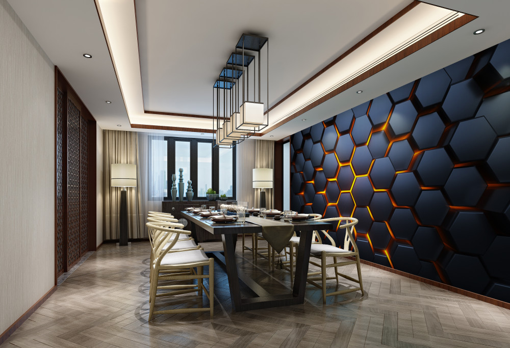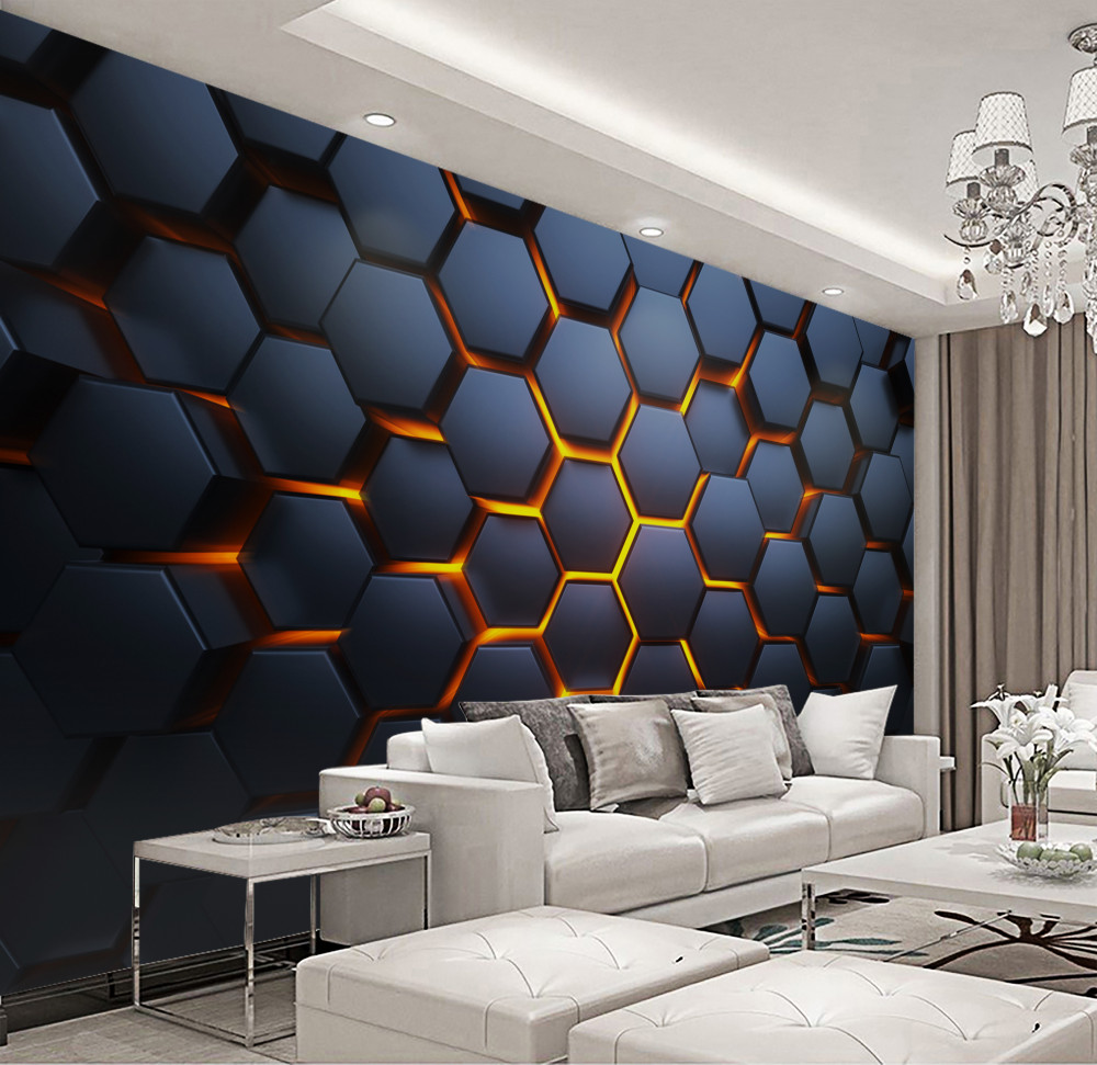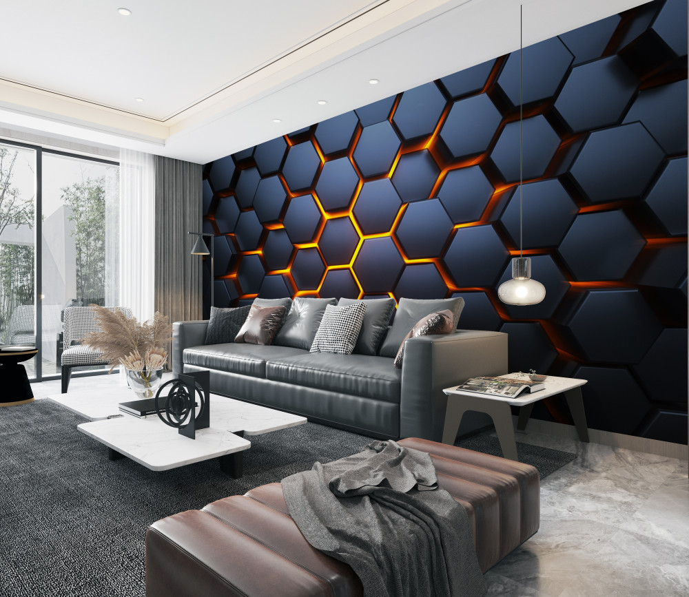 Tapeta Fototapeta wiele sześciokątów ze złotym podświetleniem (artykuł a93115 ) z kategorii Fototapety 3D