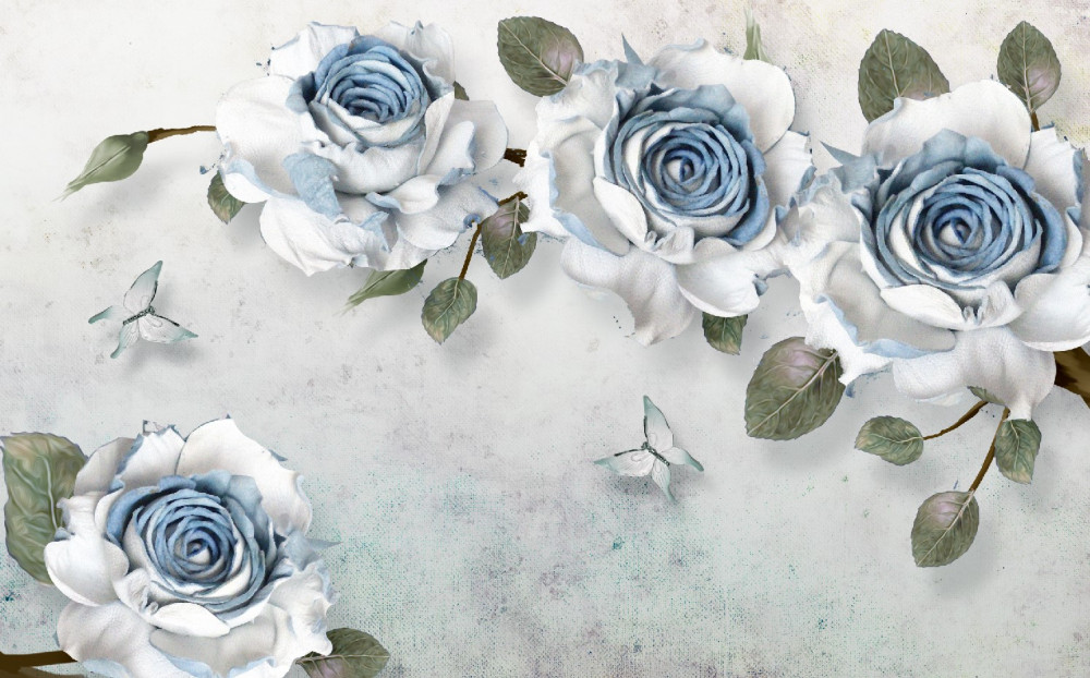 Tapeta Fototapeta wspaniałe białe kwiaty z niebieskim środkiem (artykuł pb7823 ) z kategorii Fototapety 3D