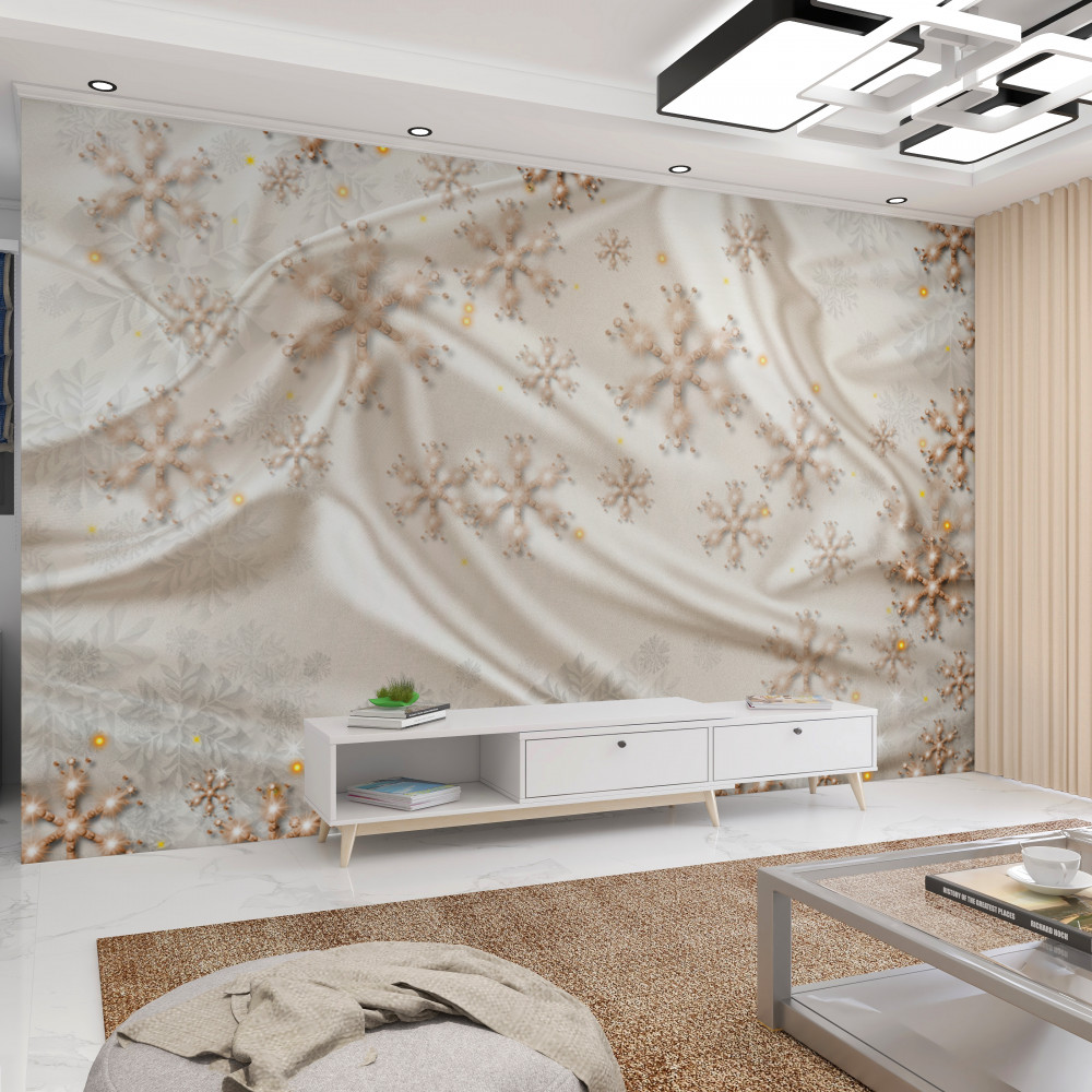 Tapeta Fototapeta wspaniałe płatki śniegu na jasnym jedwabiu (artykuł a91272 ) z kategorii Fototapety 3D