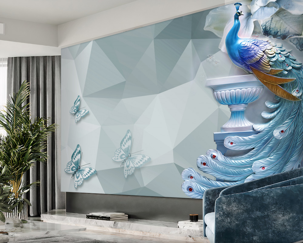 Tapeta Fototapeta wspaniały paw i motyle (artykuł pb4444 ) z kategorii Fototapety 3D