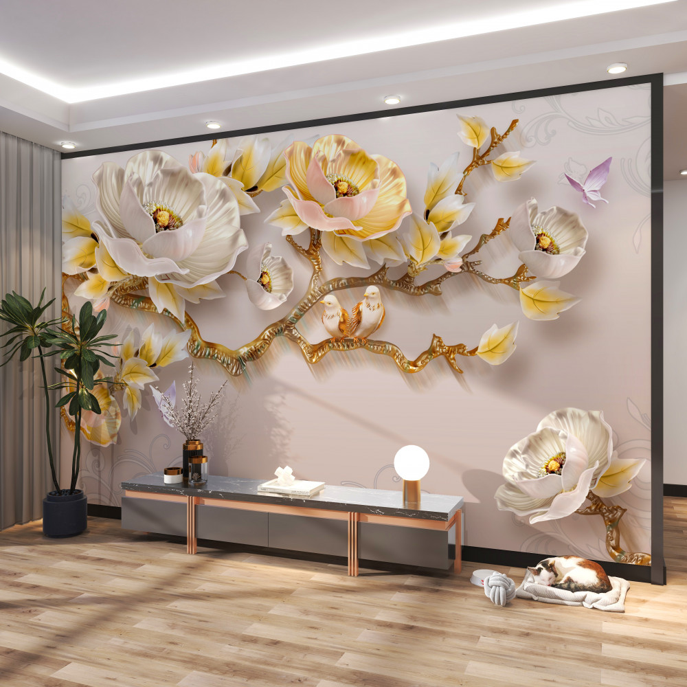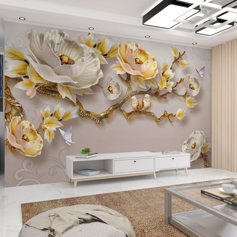 Tapeta Fototapeta wysadzane klejnotami gałęzie magnolii i złoto (artykuł a94340 ) z kategorii Fototapety 3D