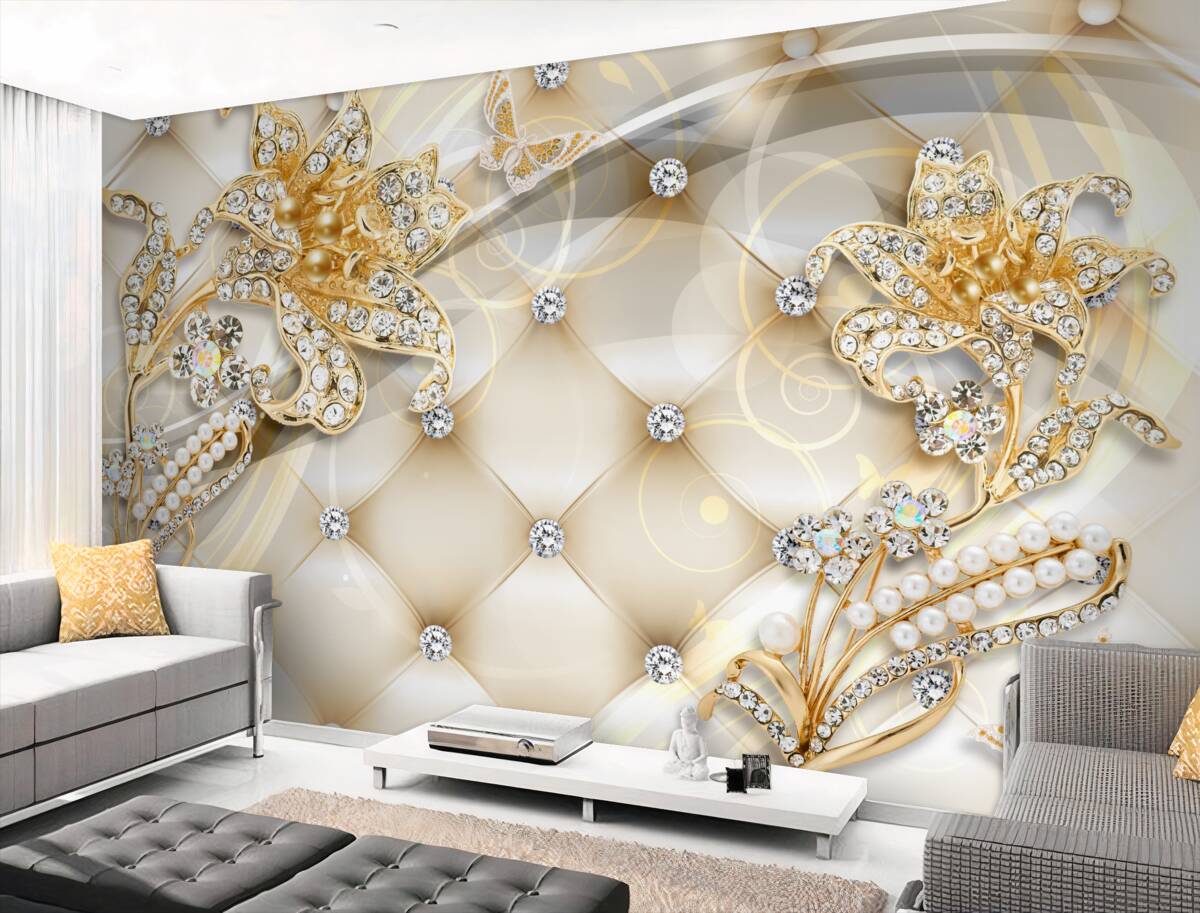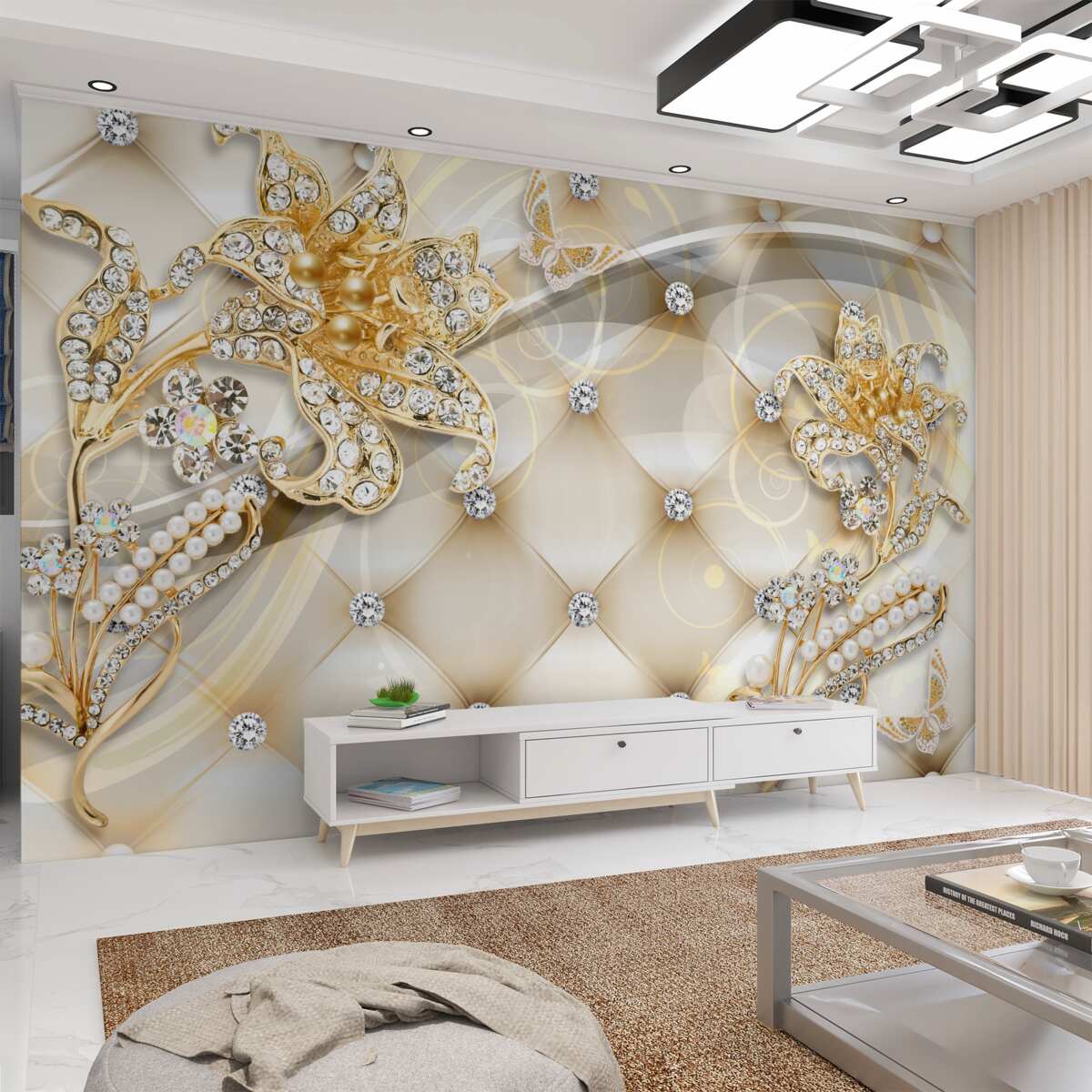 Tapeta Fototapeta wysadzane klejnotami kwiaty i złoto z perłami (artykuł a94435 ) z kategorii Fototapety 3D