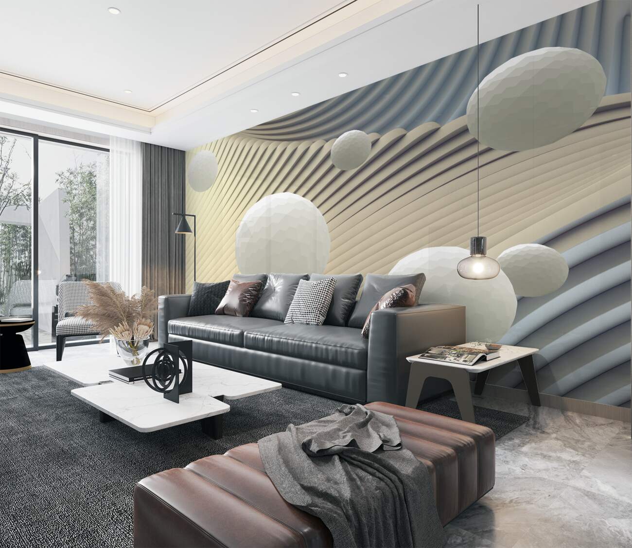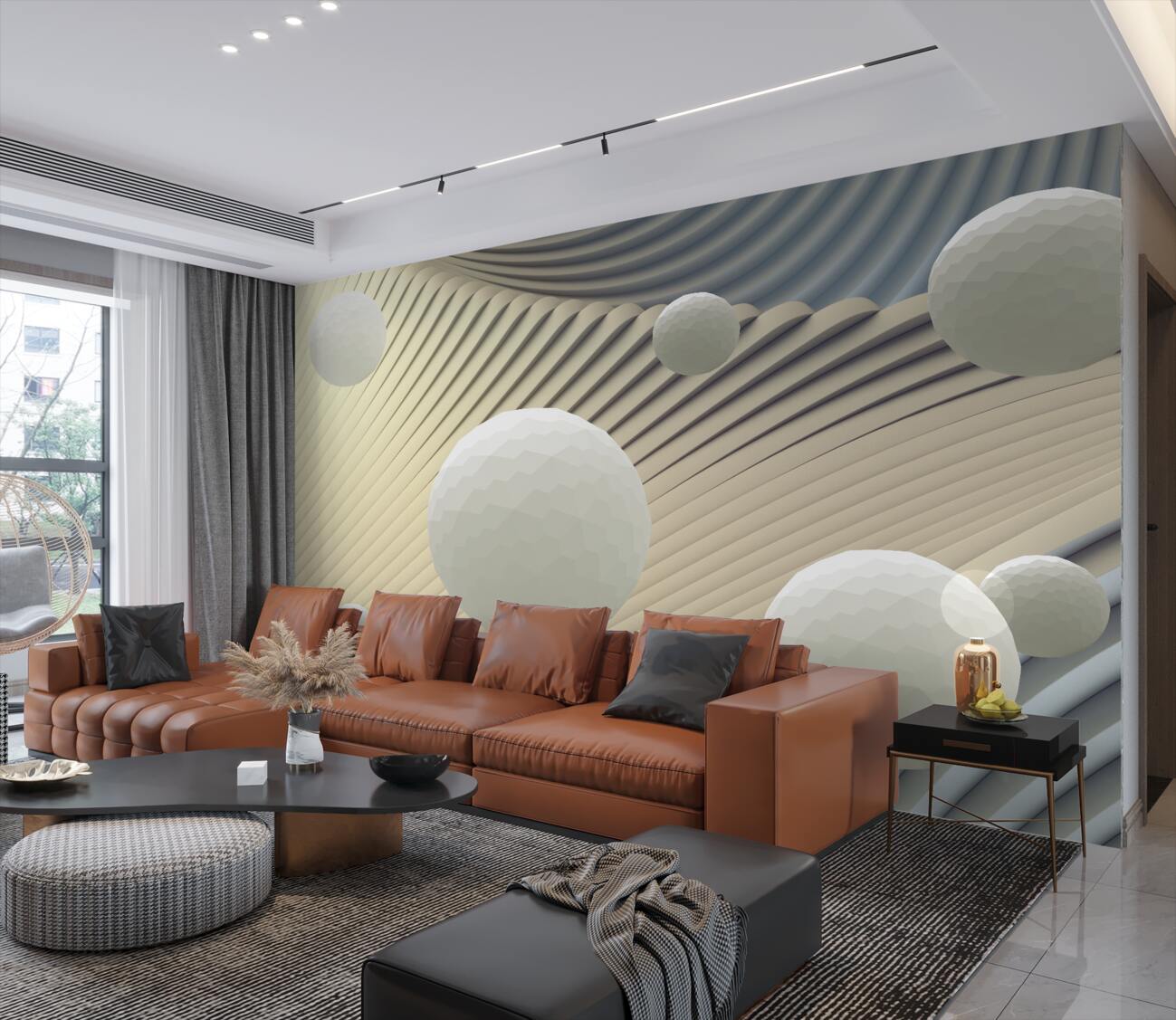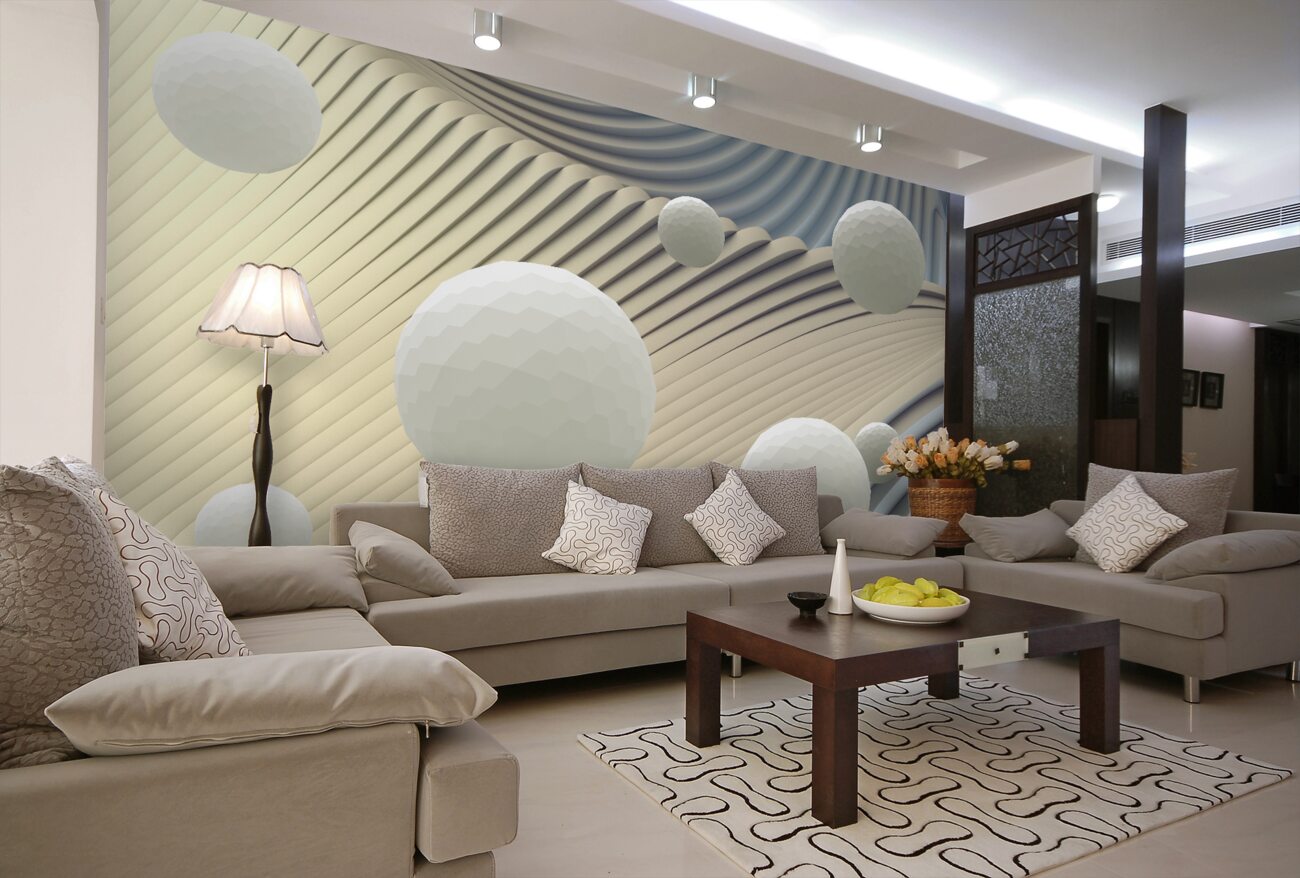 Tapeta Fototapeta Wysokie białe kulki i fale (artykuł a100145 ) z kategorii Fototapety 3D