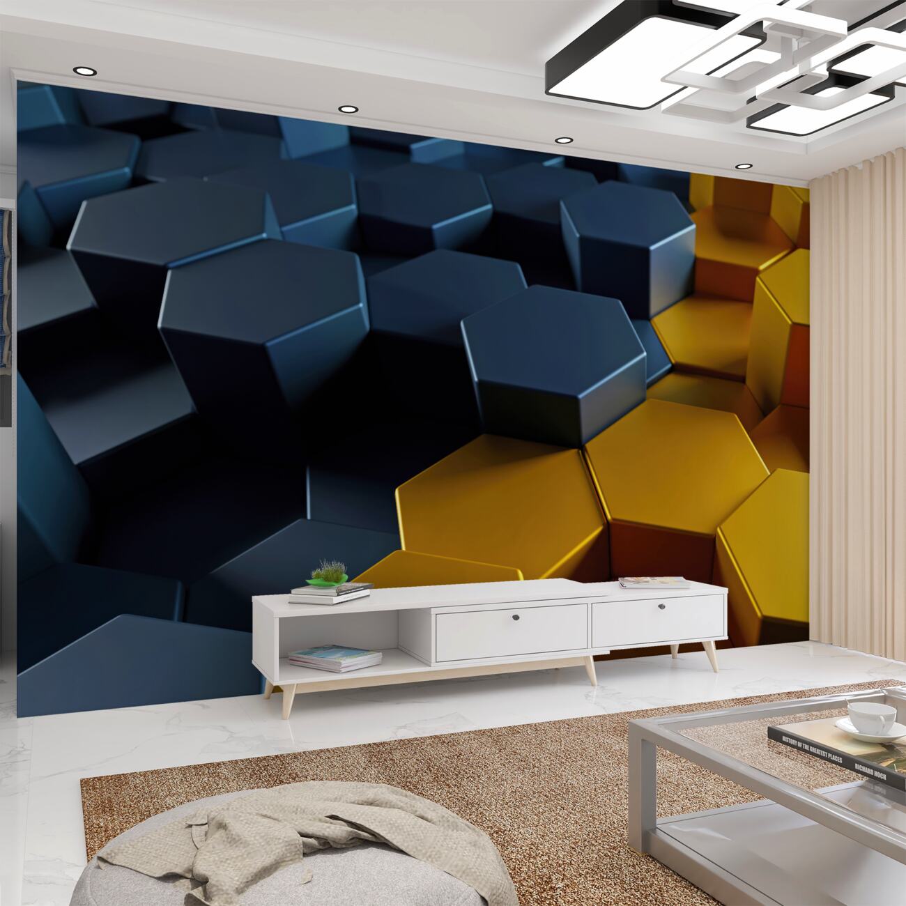 Tapeta Fototapeta Wysokie i niskie cylindry niebieskie i żółte (artykuł u10017 ) z kategorii Fototapety 3D