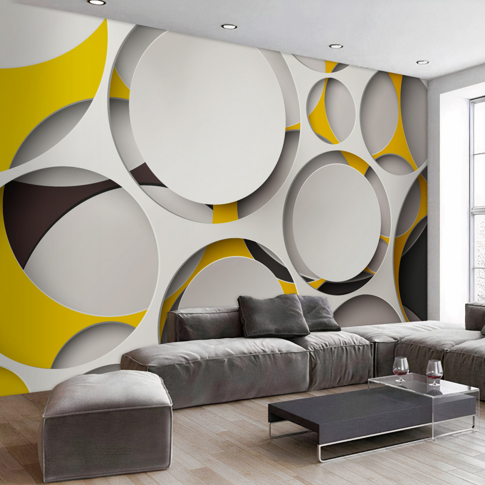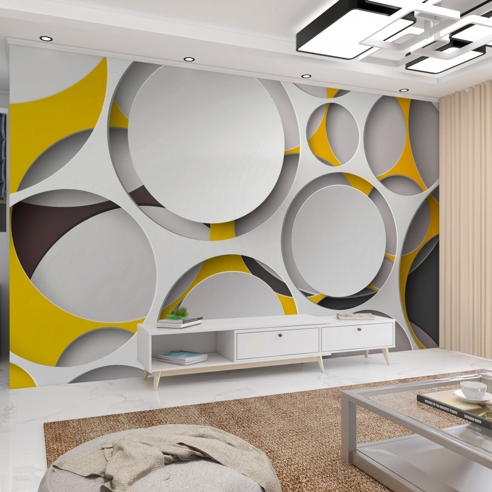 Tapeta Fototapeta wytnij białe kółka na żółtej siatce (artykuł pb5556 ) z kategorii Fototapety 3D