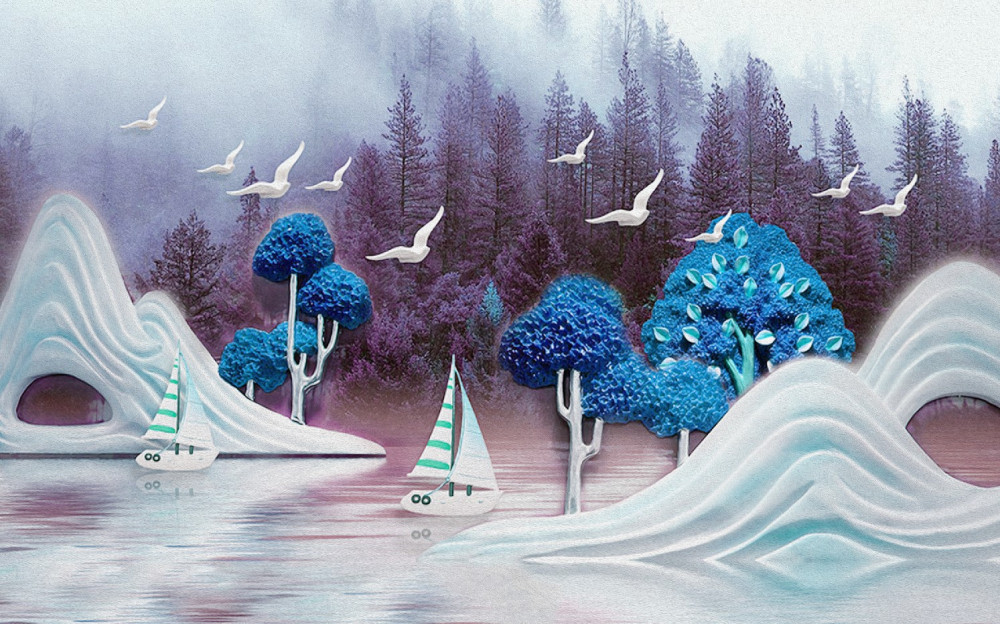 Tapeta Fototapeta żaglówki pływają po jeziorze nocą (artykuł pb7818 ) z kategorii Fototapety 3D