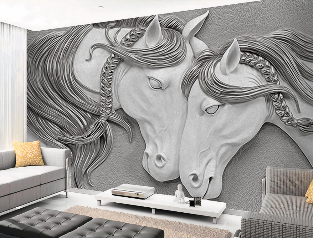 Tapeta Fototapeta zakochane konie z płaskorzeźbami (artykuł pb8899 ) z kategorii Fototapety 3D
