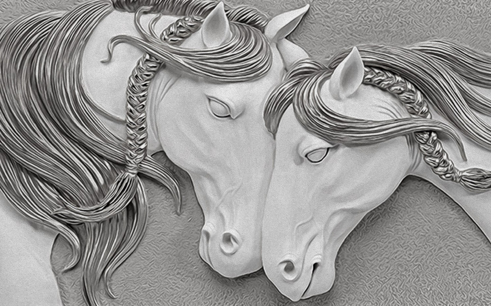 Fototapeta zakochane konie z płaskorzeźbami