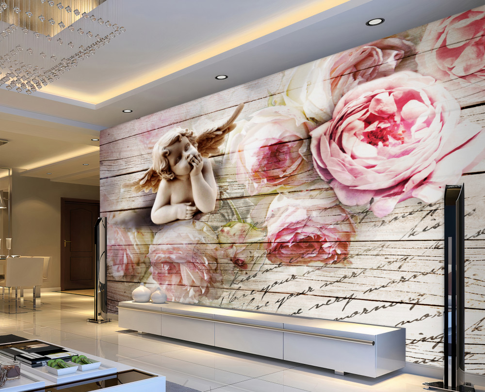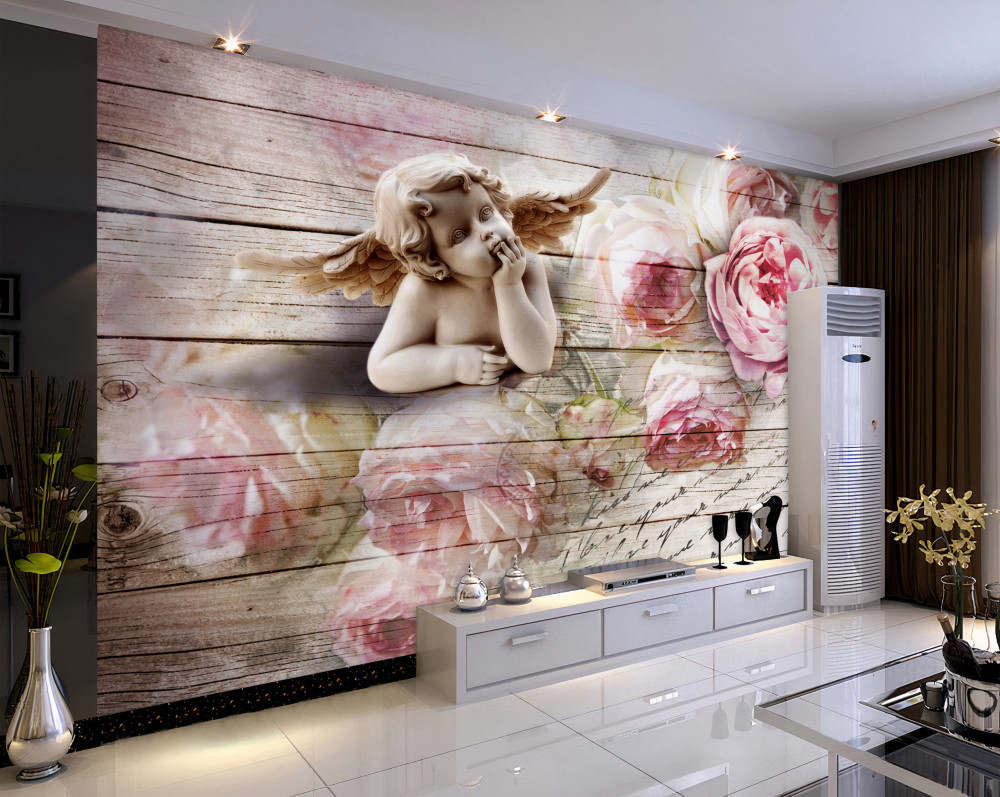 Tapeta Fototapeta zamyślony anioł i różowe róże (artykuł a90949 ) z kategorii Fototapety 3D