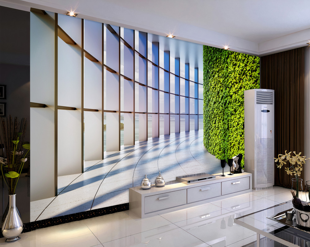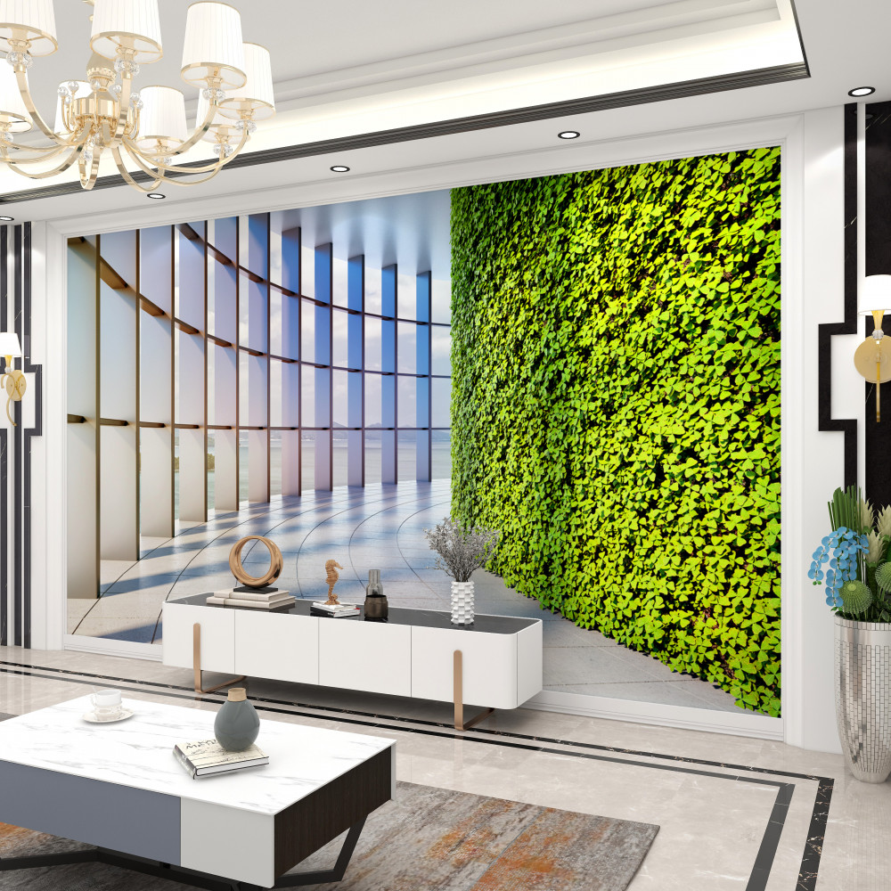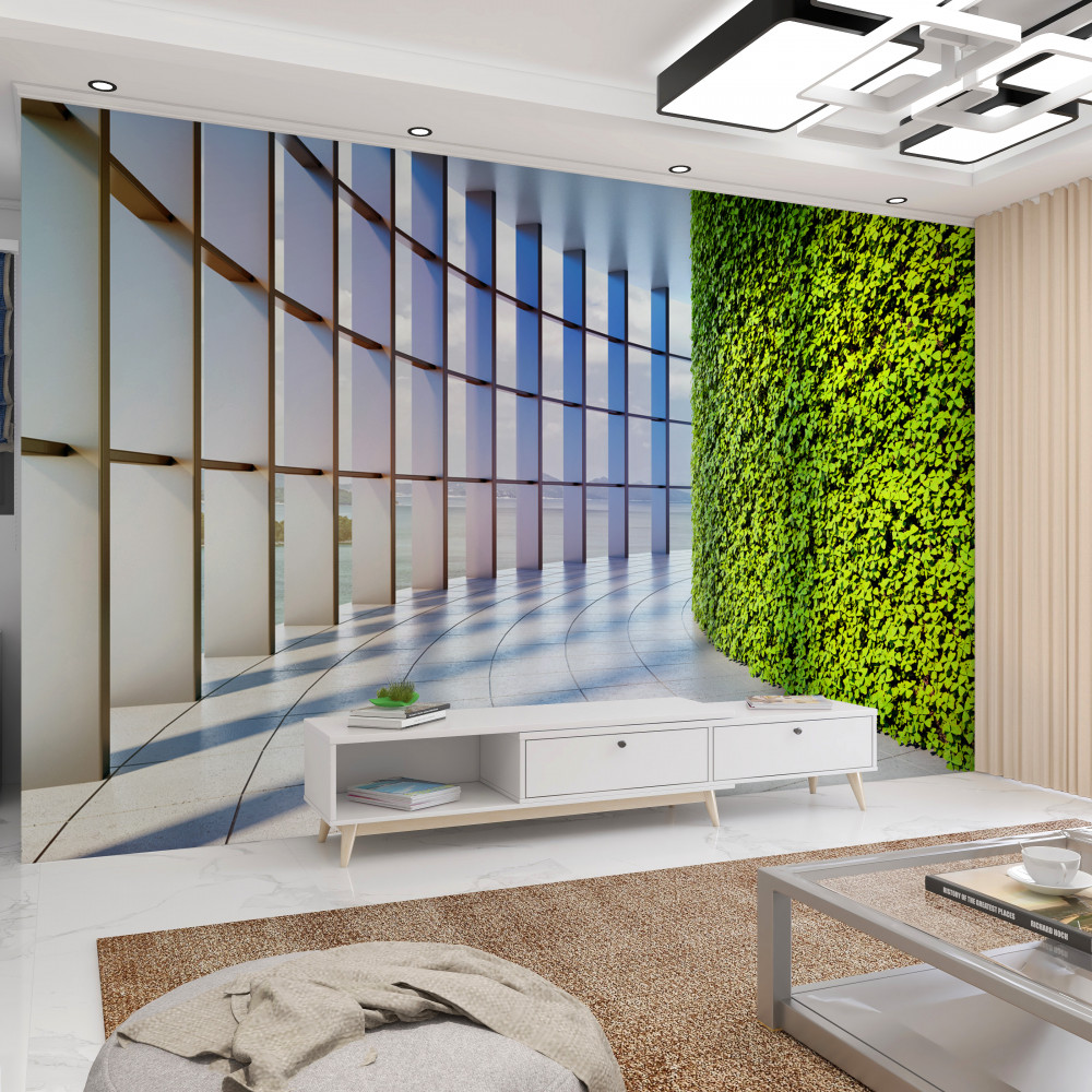 Tapeta Fototapeta zielona ściana w biurowcu (artykuł a93714 ) z kategorii Fototapety 3D
