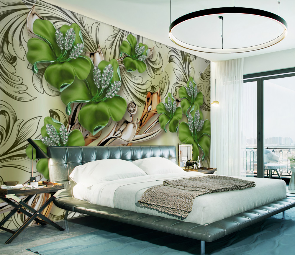 Tapeta Fototapeta zielone kwiaty w perłach i złocie (artykuł a93604 ) z kategorii Fototapety 3D