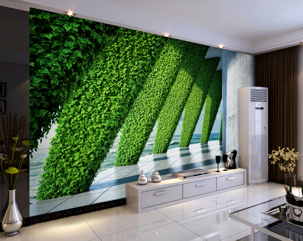 Tapeta Fototapeta zielone przestrzenie na kolumnach w korytarzu (artykuł a93116 ) z kategorii Fototapety 3D