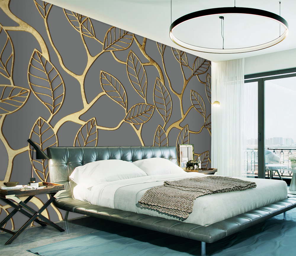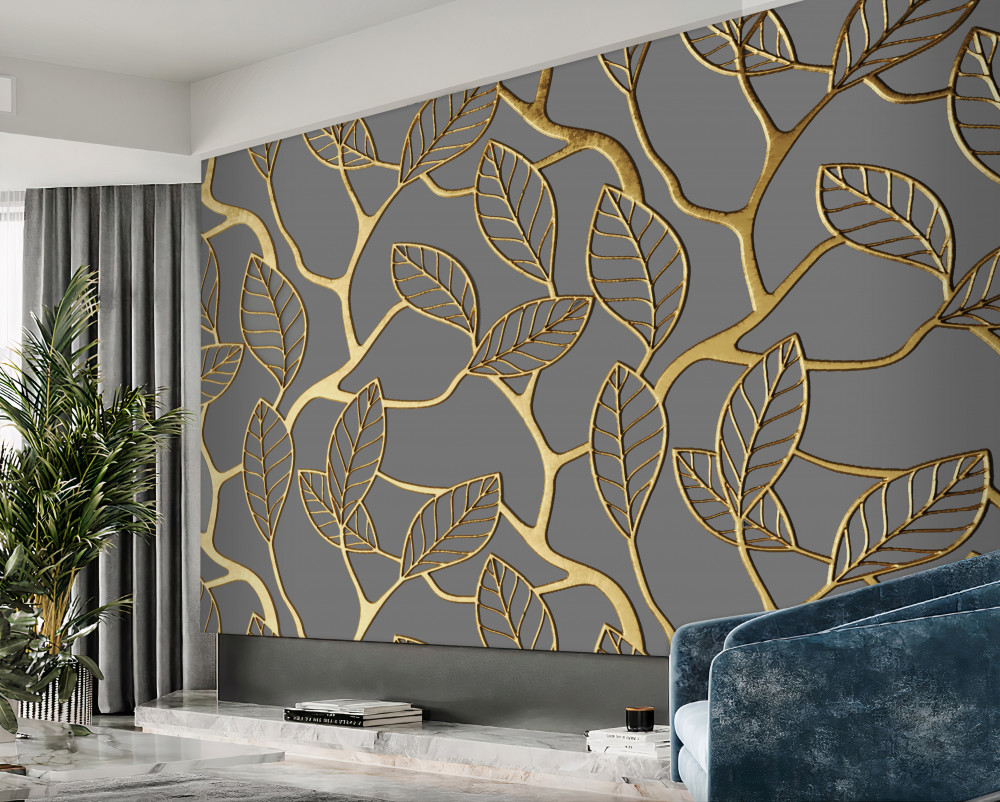 Tapeta Fototapeta złote gałązki i liście (artykuł a93700 ) z kategorii Fototapety 3D