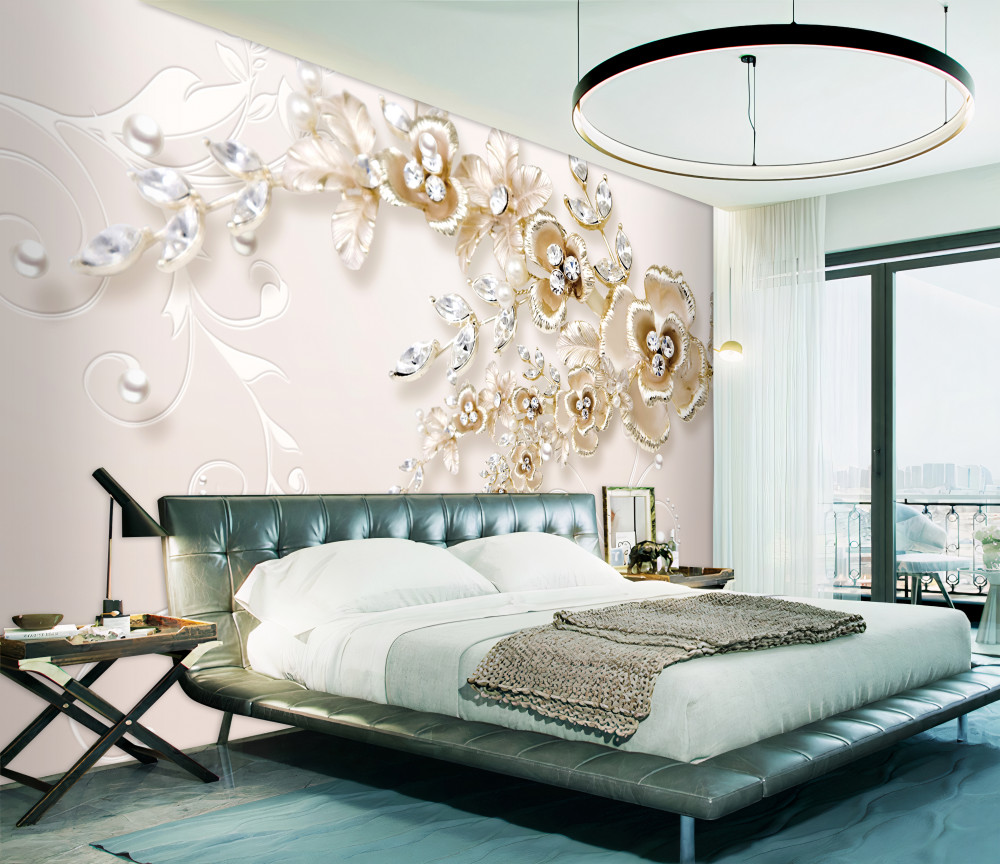Tapeta Fototapeta złote gałęzie ozdobione kamieniami (artykuł a90080 ) z kategorii Fototapety 3D