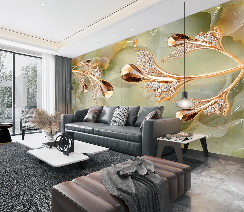 Tapeta Fototapeta złote gałęzie z dekoracjami (artykuł a94421 ) z kategorii Fototapety 3D