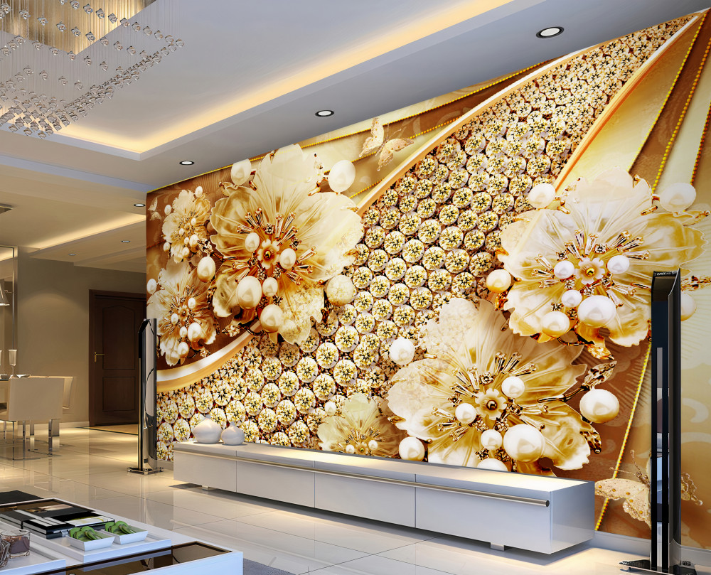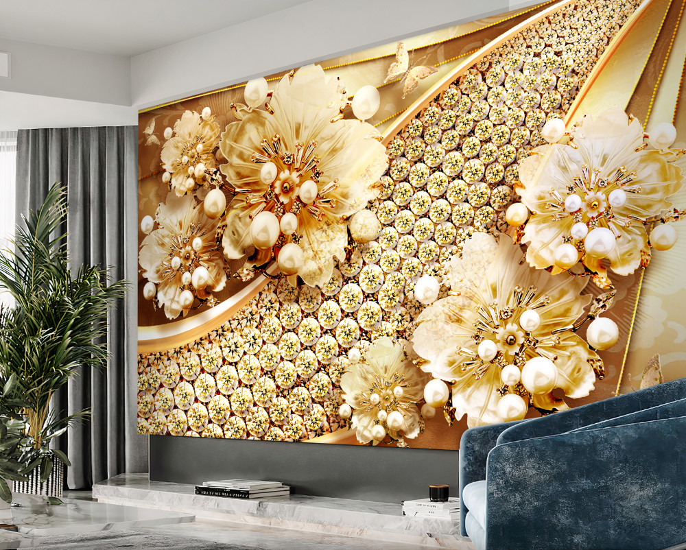 Tapeta Fototapeta złote i złote perły w kwiatach (artykuł a90113 ) z kategorii Fototapety 3D