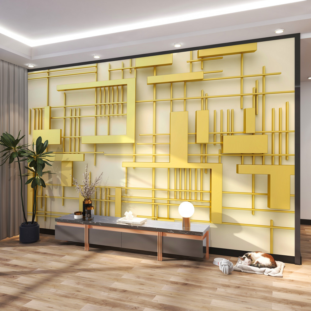 Tapeta Fototapeta złote kształty geometryczne w złotej siatce (artykuł a94326 ) z kategorii Fototapety 3D