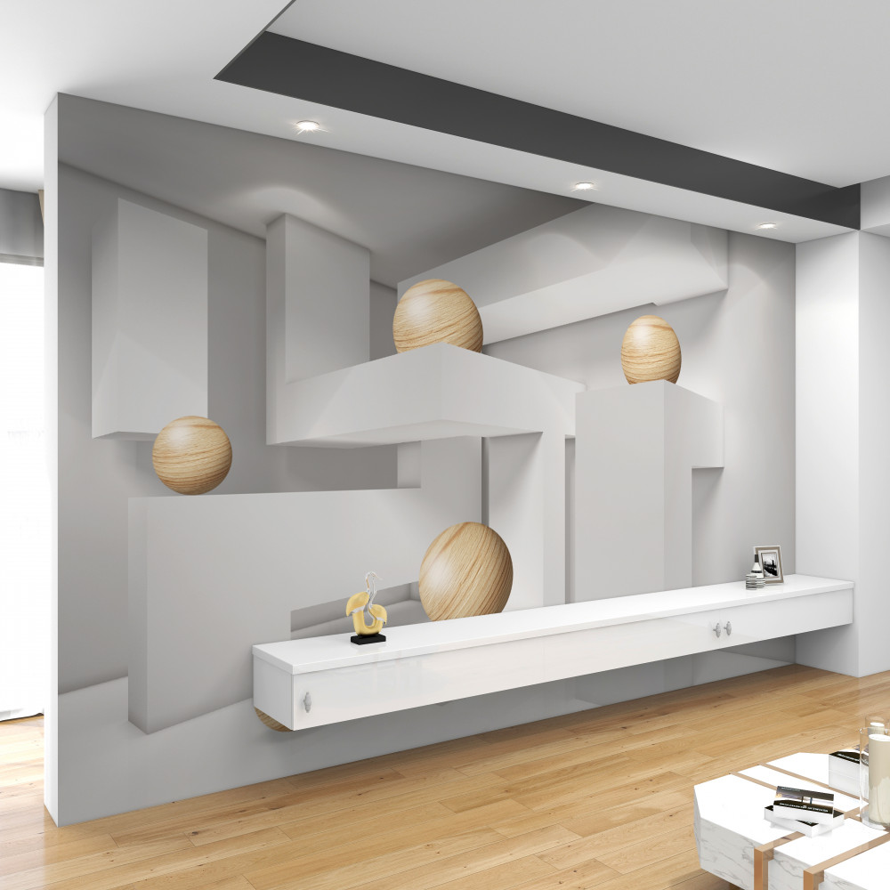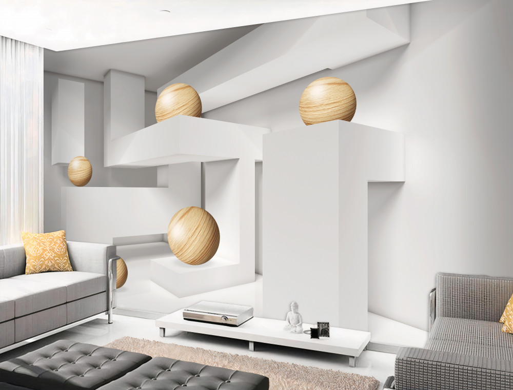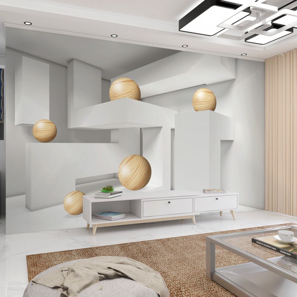 Tapeta Fototapeta złote kule na cokołach (artykuł a91751 ) z kategorii Fototapety 3D