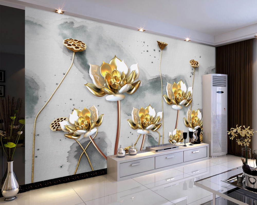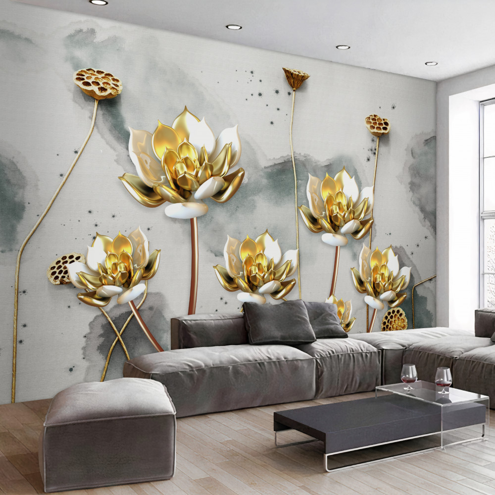 Tapeta Fototapeta złote kwiaty na smukłych nogach (artykuł pb5586 ) z kategorii Fototapety 3D