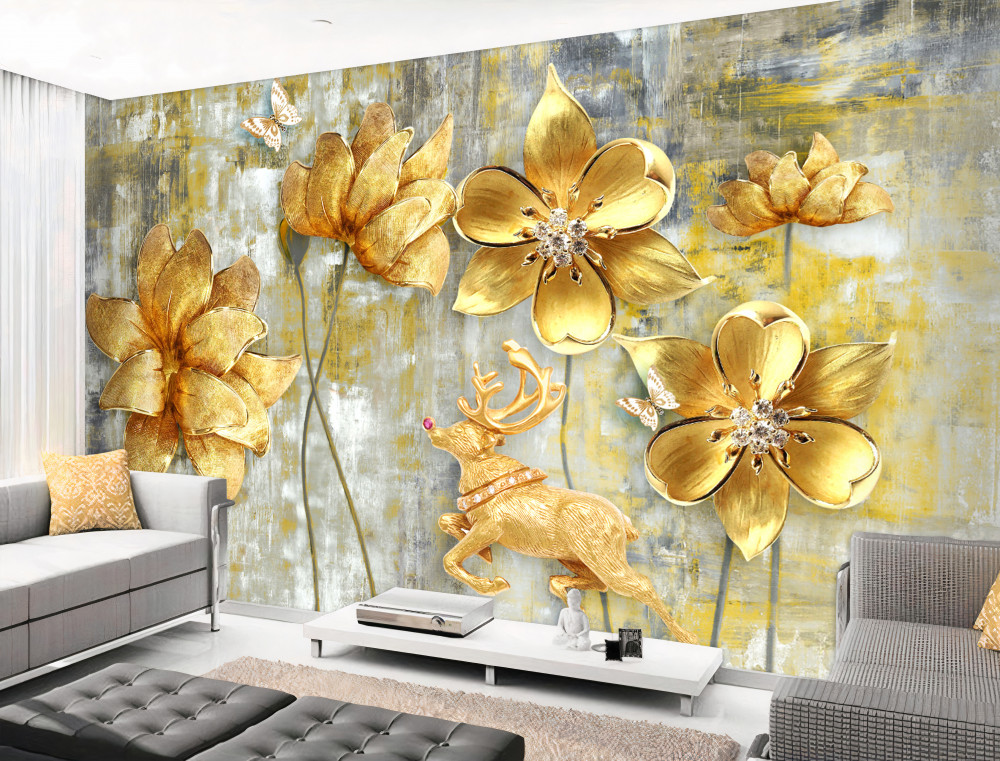 Tapeta Fototapeta złote kwiaty w deszczu (artykuł pb10032 ) z kategorii Fototapety 3D