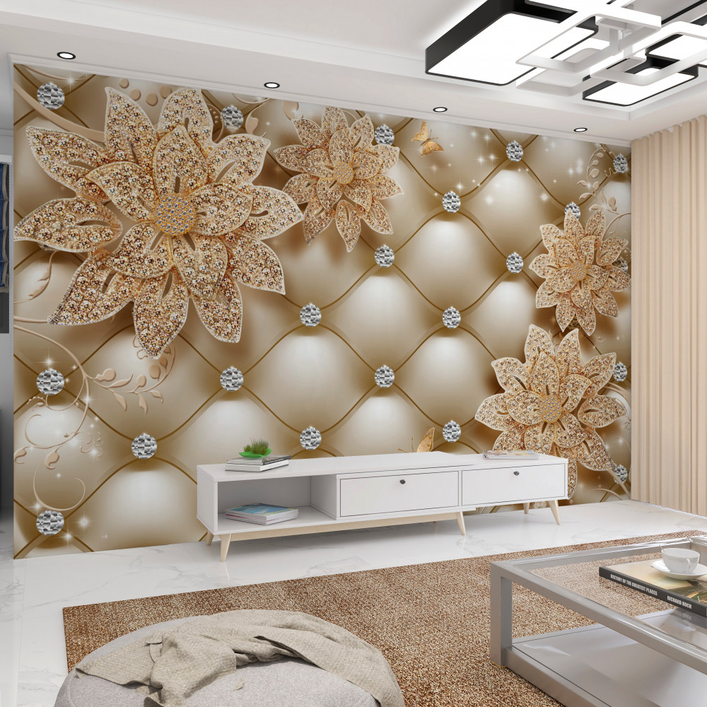 Tapeta Fototapeta złote kwiaty w perłach (artykuł a91297 ) z kategorii Fototapety 3D