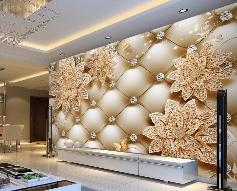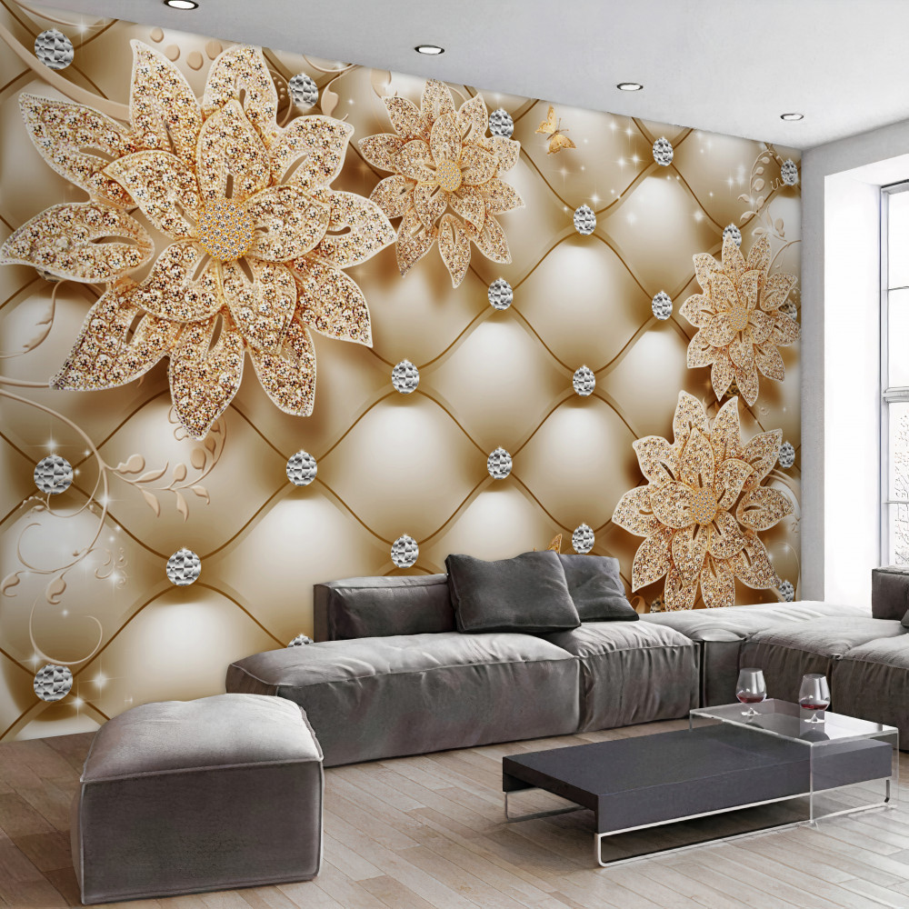 Tapeta Fototapeta złote kwiaty z perłami, kamieniami i koralikami (artykuł a90021 ) z kategorii Fototapety 3D
