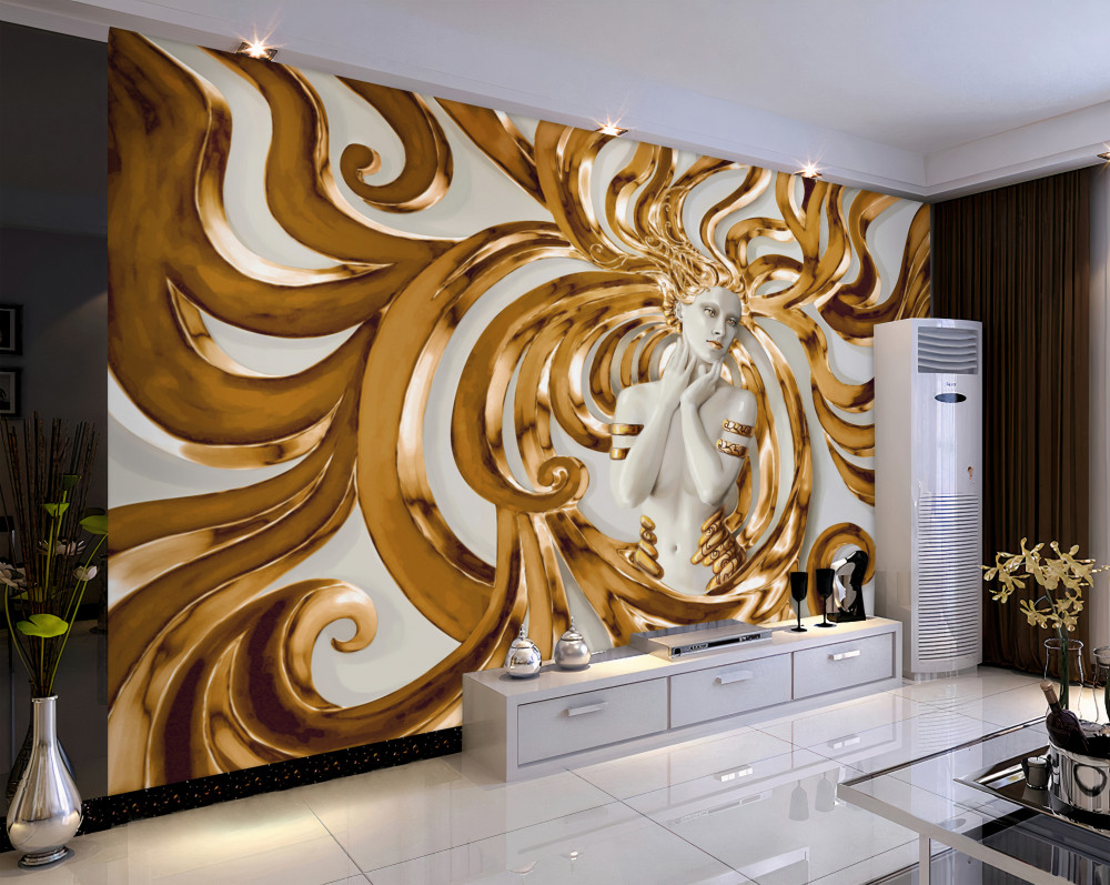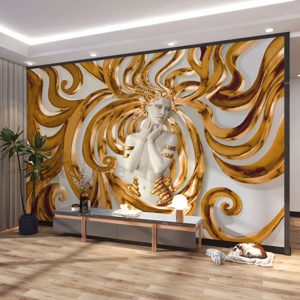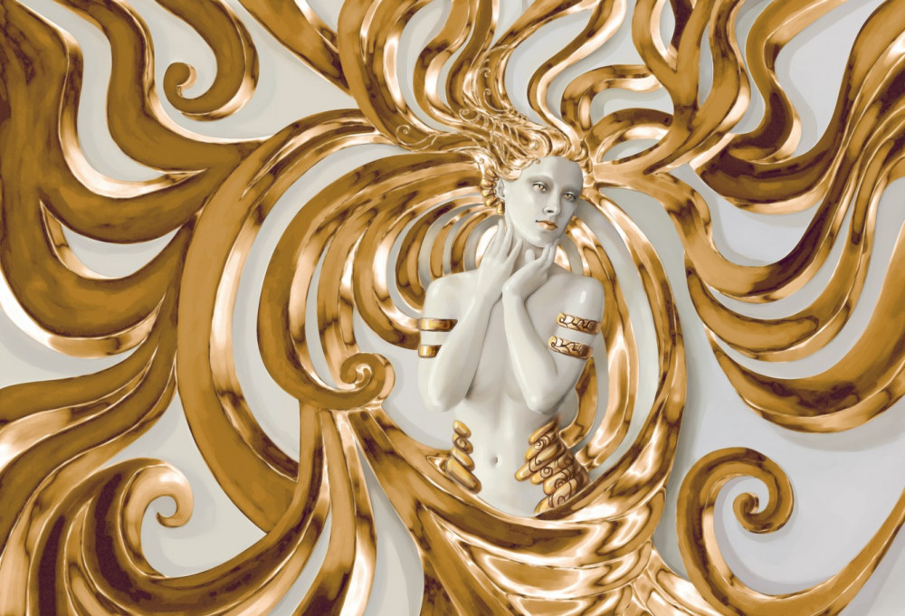 Tapeta Fototapeta złote linie i figura dziewczyny (artykuł a90941 ) z kategorii Fototapety 3D