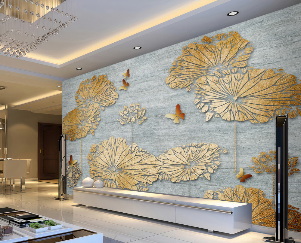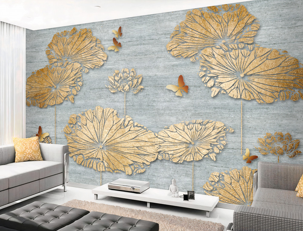 Tapeta Fototapeta złote liście i motyle na wodzie (artykuł a91900 ) z kategorii Fototapety 3D