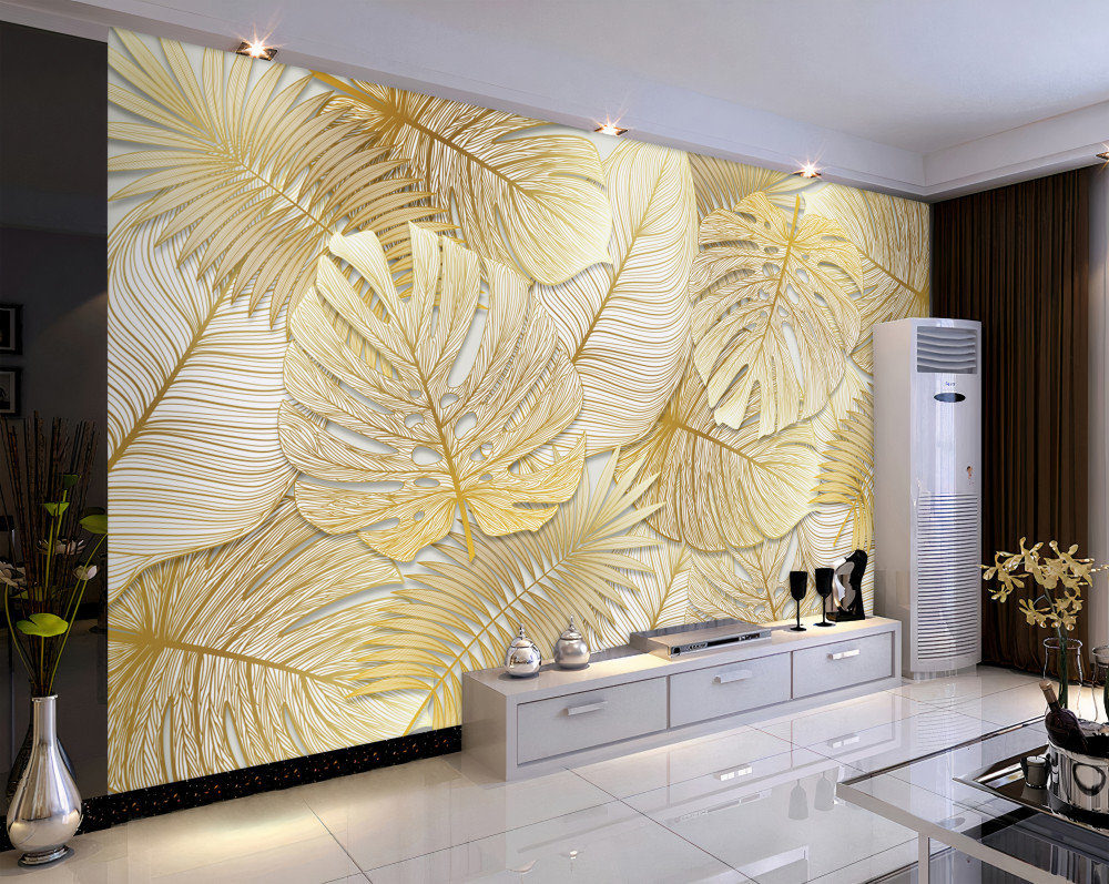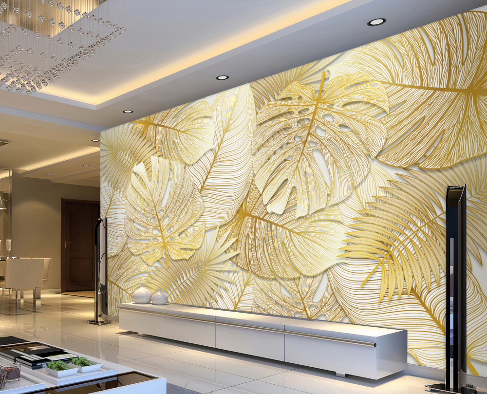 Tapeta Fototapeta złote liście monstery i paproci (artykuł a90454 ) z kategorii Fototapety 3D