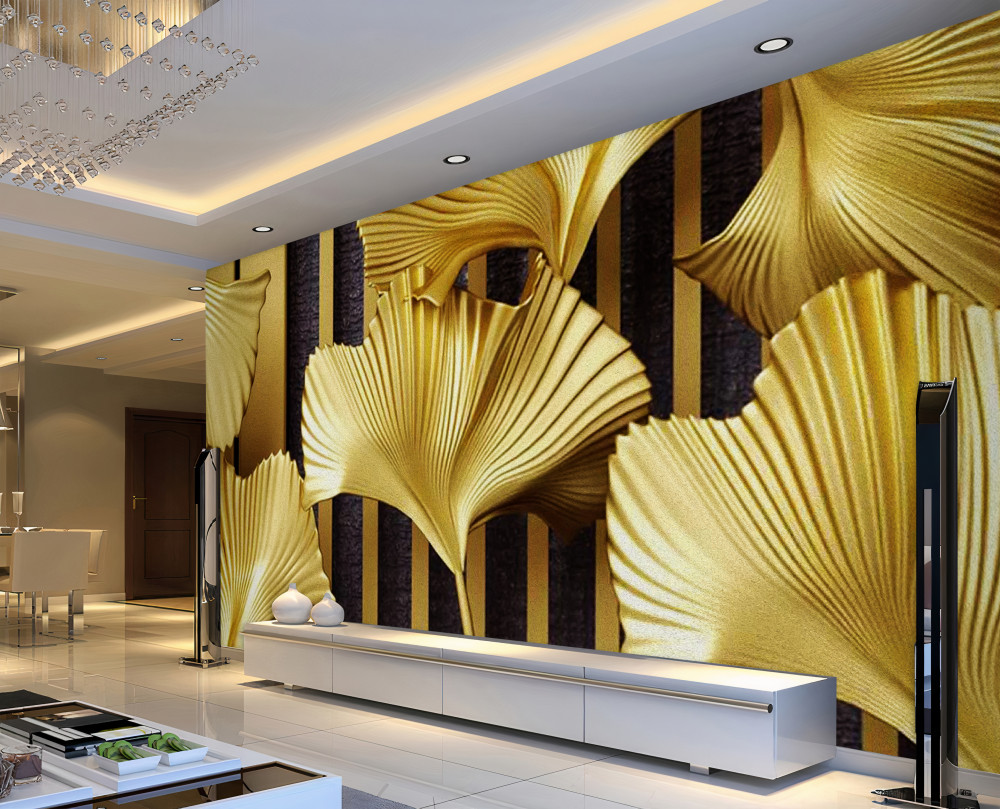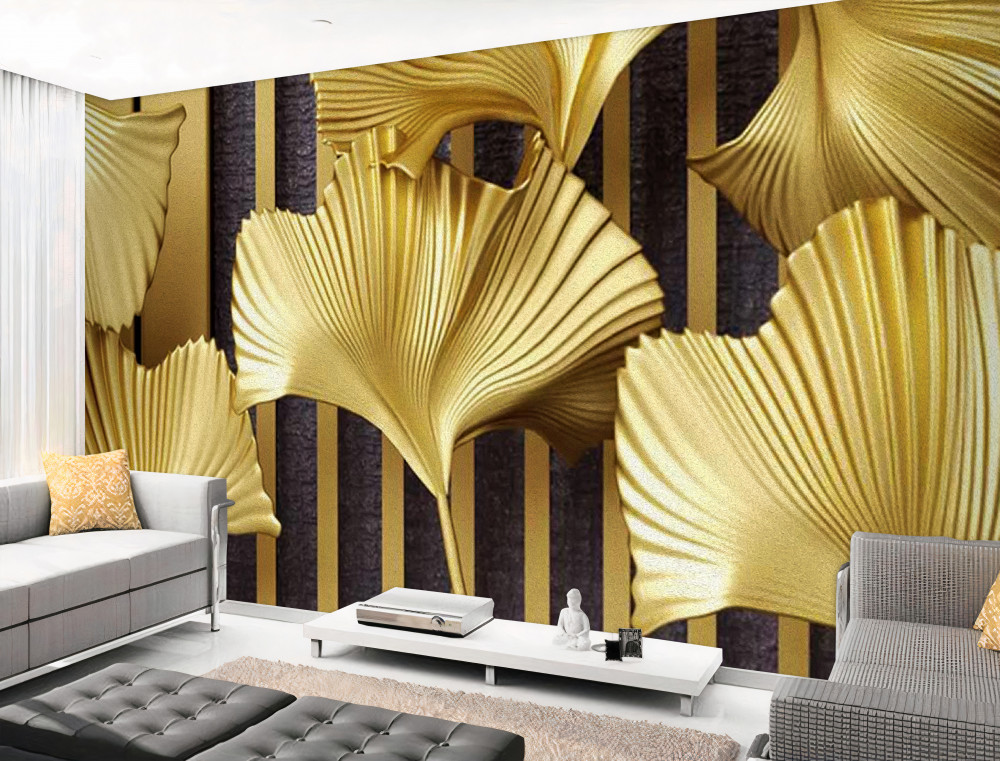 Tapeta Fototapeta złote liście paproci (artykuł pb7784 ) z kategorii Fototapety 3D
