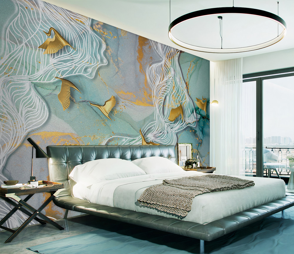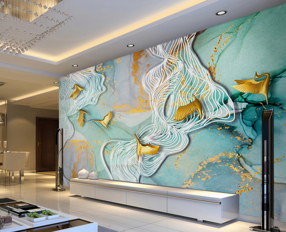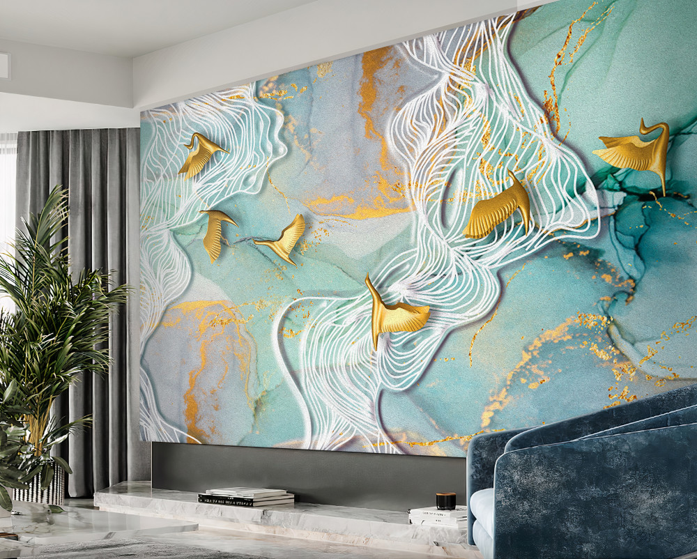 Tapeta Fototapeta złote ptaki lecą do nieba (artykuł pb7795 ) z kategorii Fototapety 3D