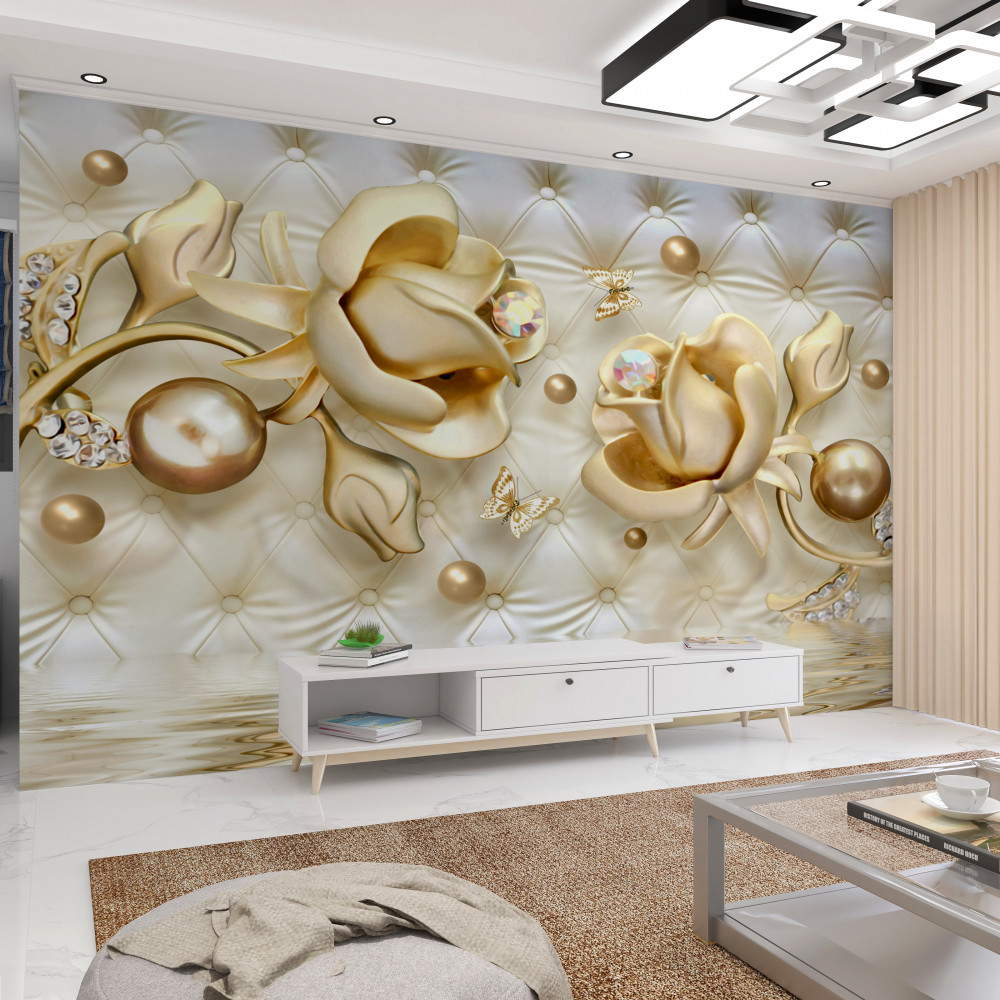 Tapeta Fototapeta złote róże z diamentami (artykuł a90997 ) z kategorii Fototapety 3D