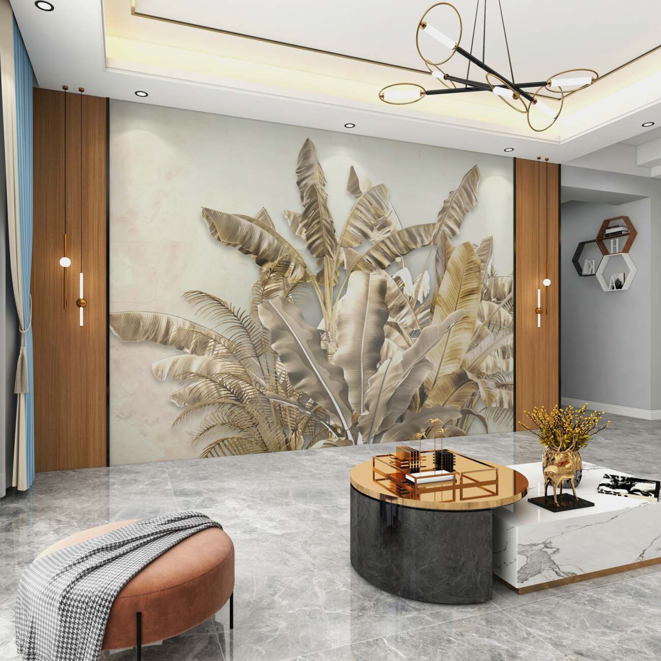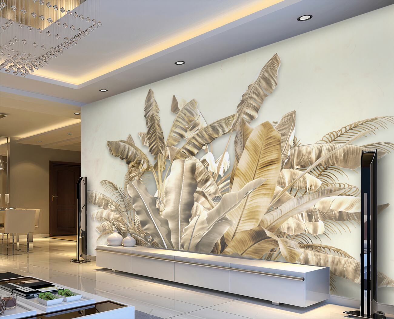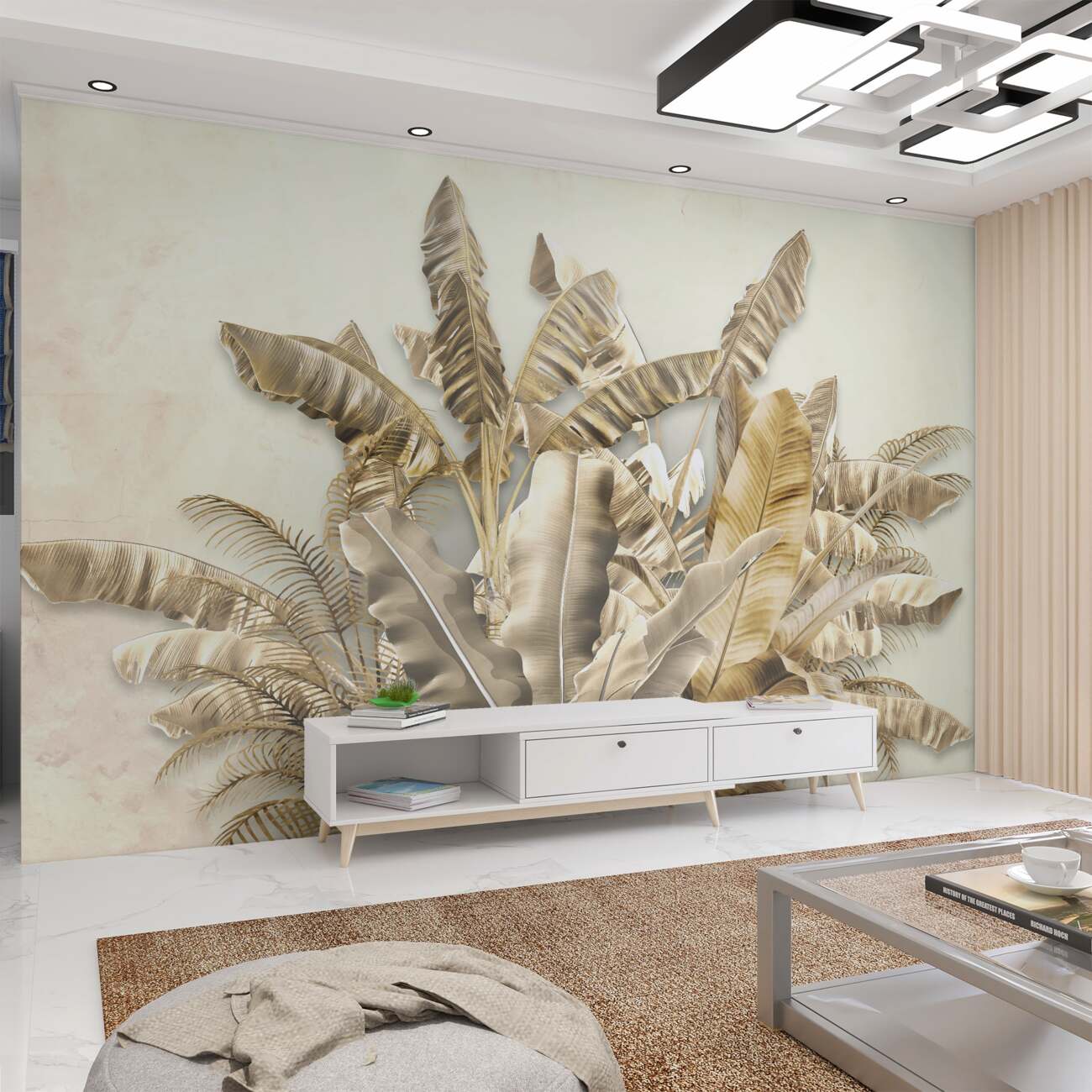Tapeta Fototapeta Złote tropikalne liście (artykuł a99076 ) z kategorii Fototapety 3D