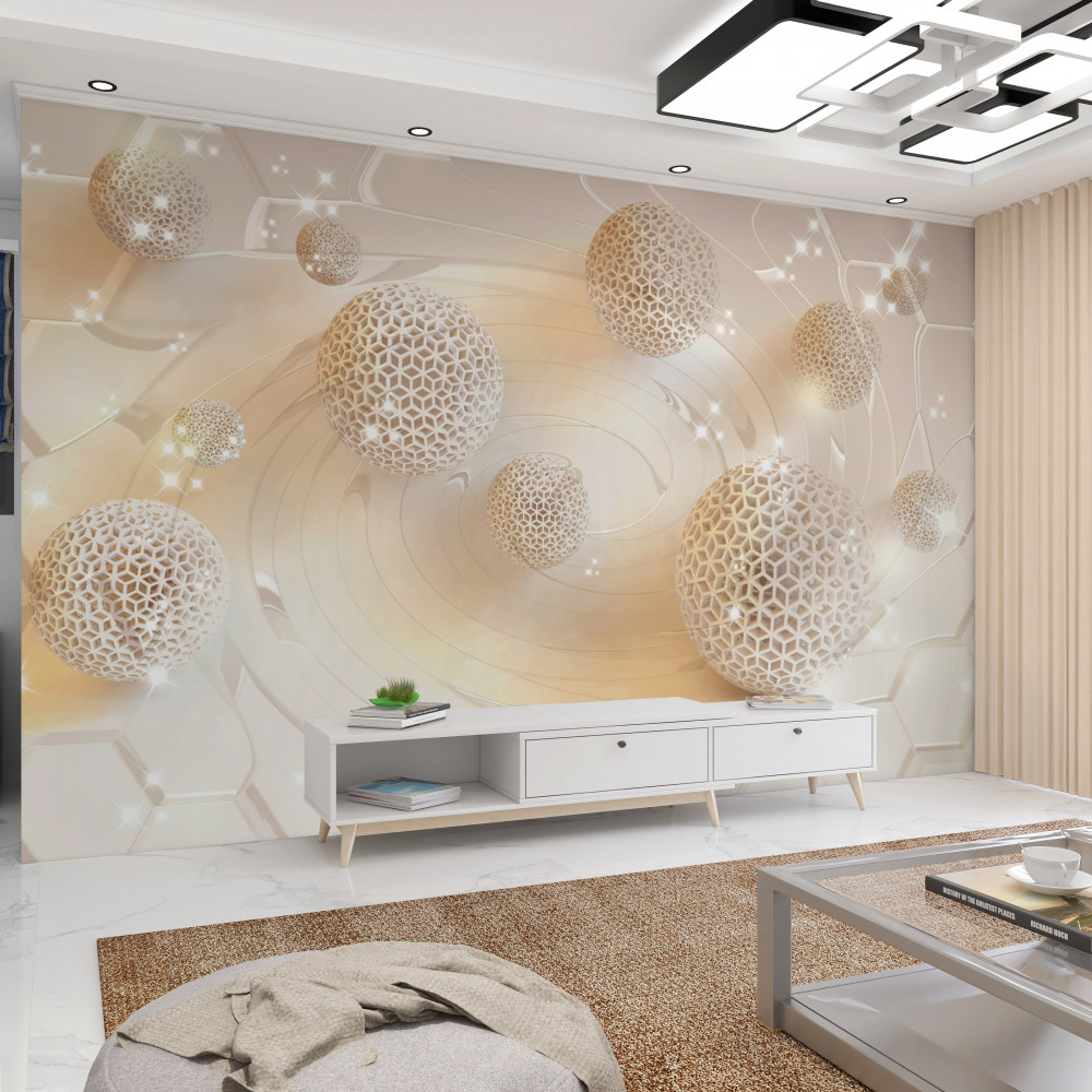 Tapeta Fototapeta złote zaokrąglone kulki (artykuł a90916 ) z kategorii Fototapety 3D