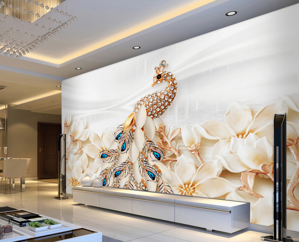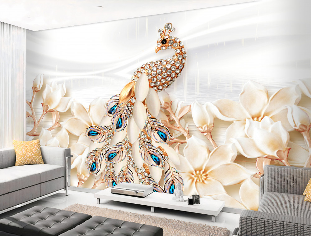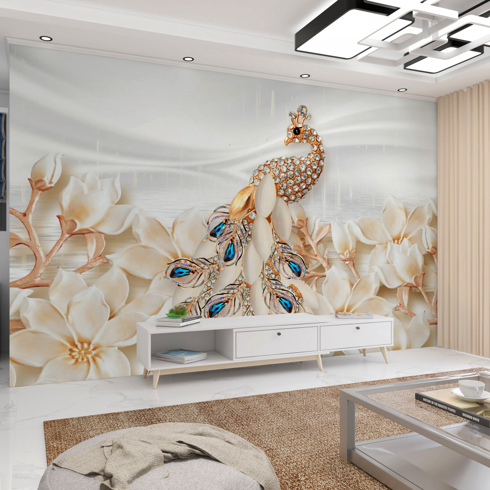 Tapeta Fototapeta złoty paw z białymi kwiatami (artykuł pb4479 ) z kategorii Fototapety 3D