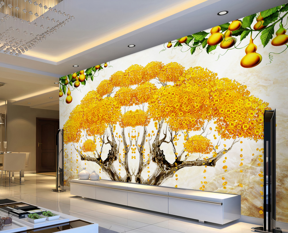 Tapeta Fototapeta żółta korona drzewa o zachodzie słońca (artykuł a91733 ) z kategorii Fototapety 3D