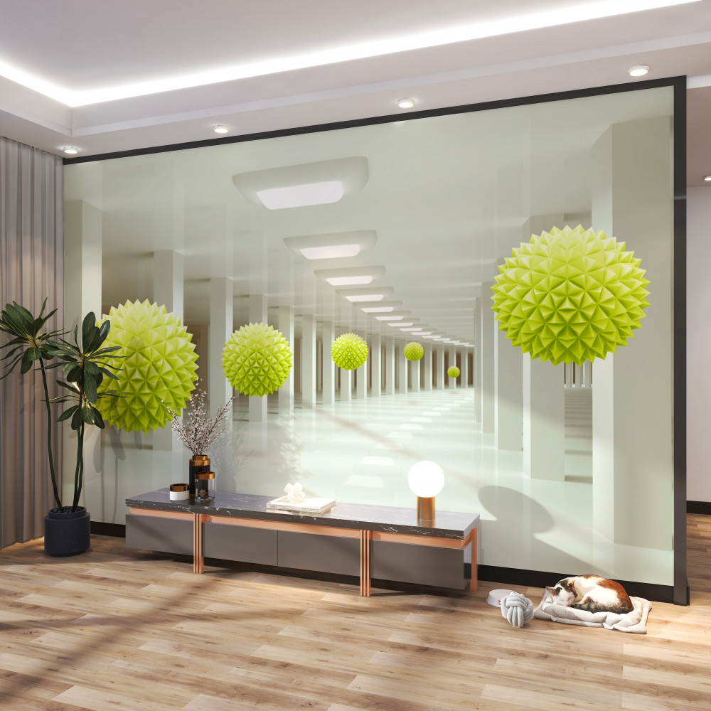 Tapeta Fototapeta żółte kulki i tunel w perspektywie (artykuł a91113 ) z kategorii Fototapety 3D