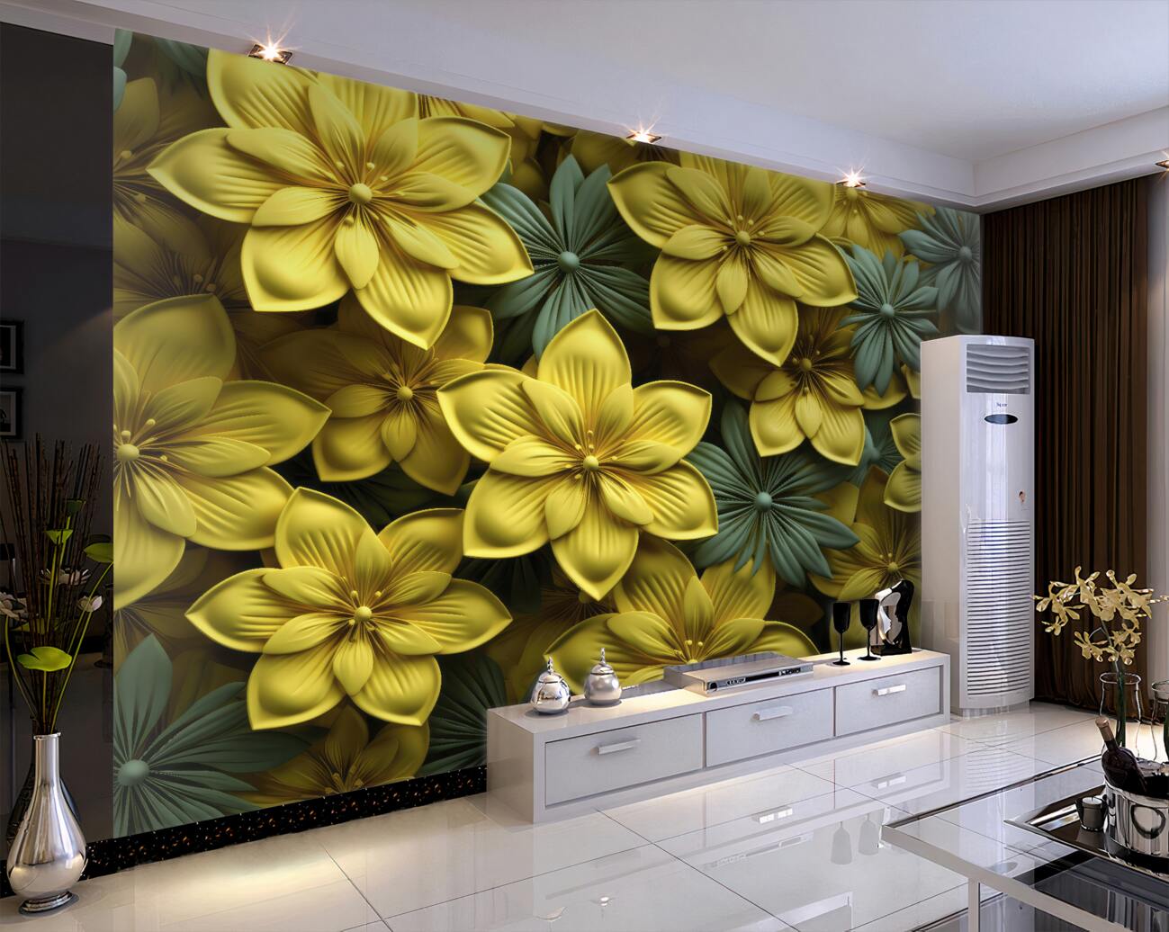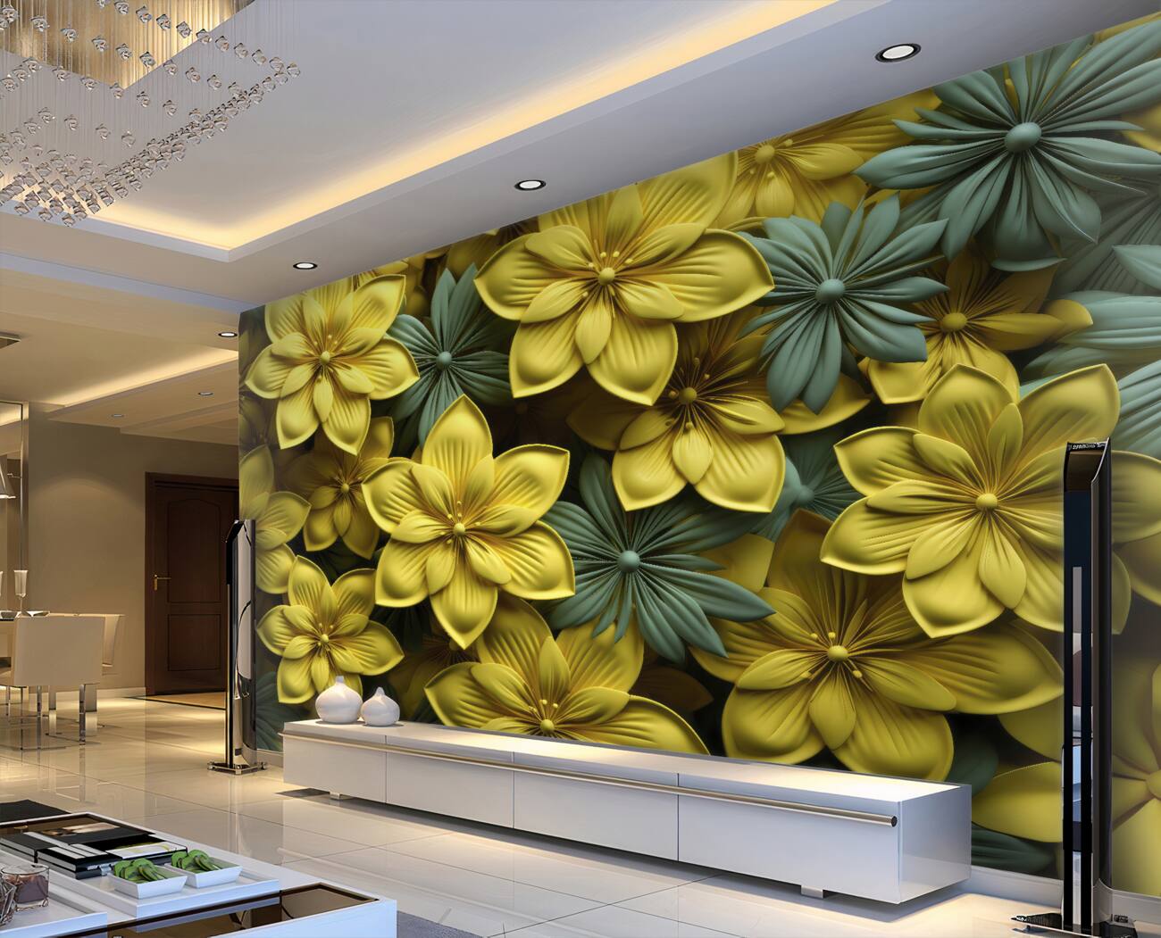 Tapeta Fototapeta Żółte kwiaty z perłami (artykuł u10115 ) z kategorii Fototapety 3D