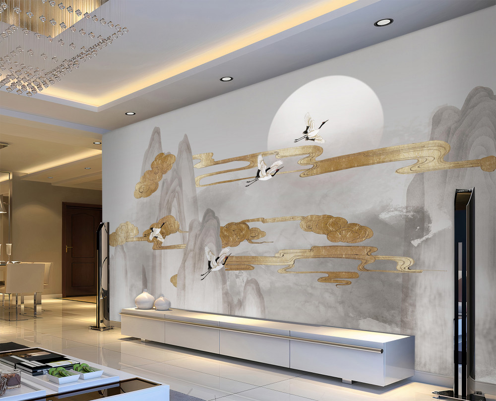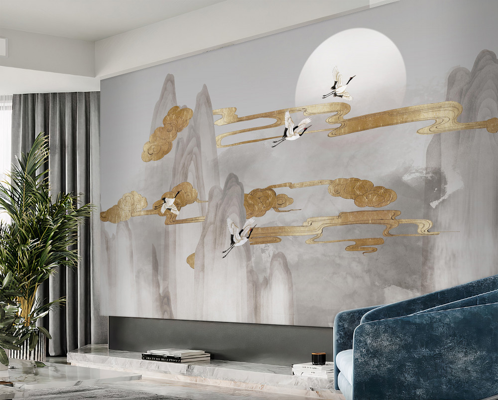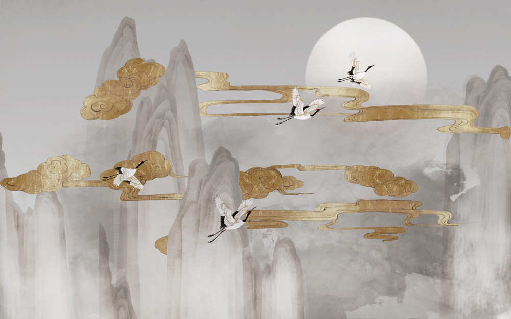 Tapeta Fototapeta żurawie latają nad szarymi szczytami (artykuł a94084 ) z kategorii Fototapety 3D