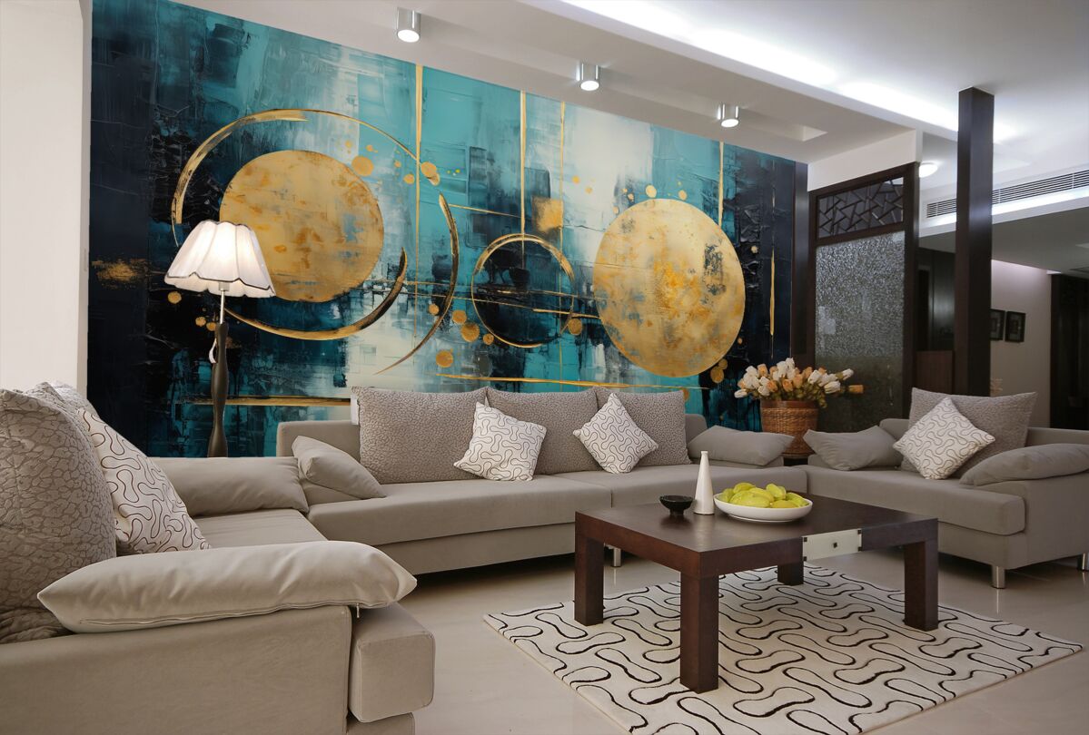 Tapeta Fototapeta Abstrakcja złoto-turkusowa (artykuł a94045 ) z kategorii Fototapety Abstrakcja