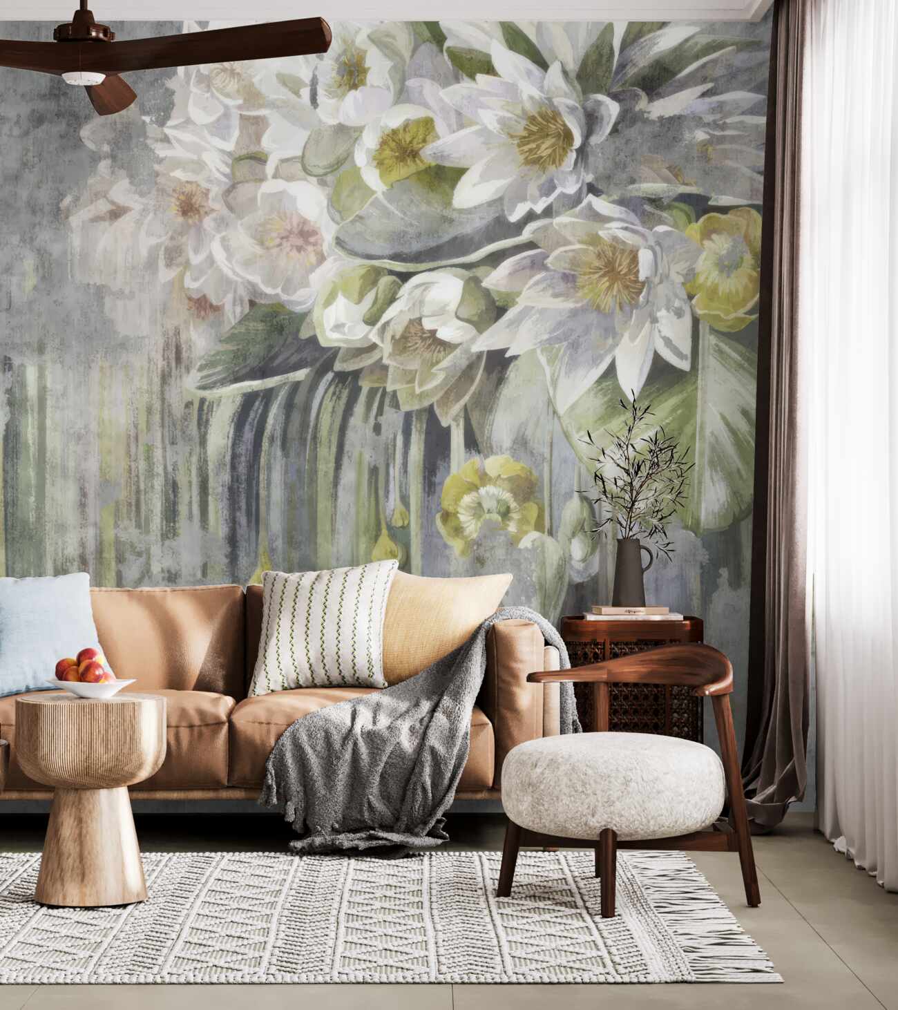 Tapeta Fototapeta Bukiet kwiatów na abstrakcyjnym tle (artykuł a99419 ) z kategorii Fototapety Abstrakcja