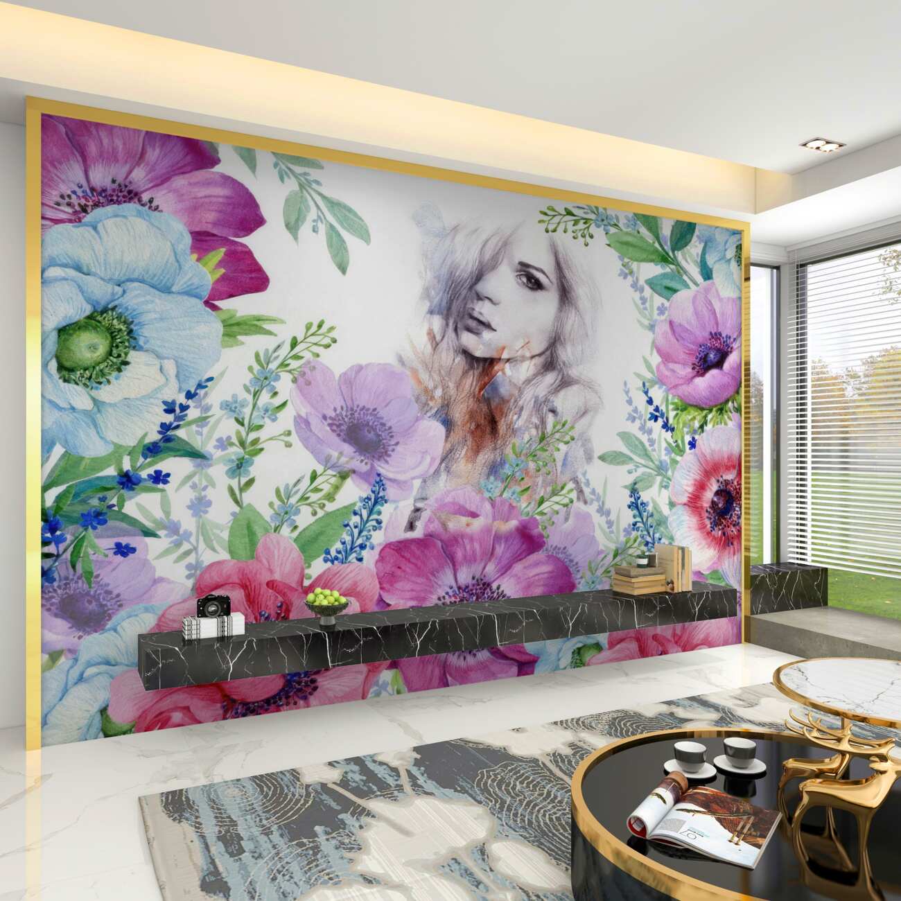 Tapeta Fototapeta Delikatny obraz dziewczyny i pięknych kwiatów (artykuł a99186 ) z kategorii Fototapety Abstrakcja