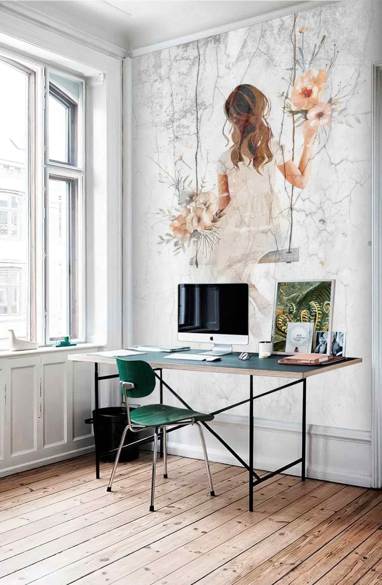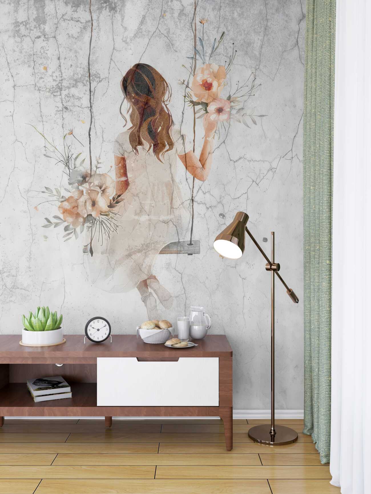 Tapeta Fototapeta Dziewczyna na huśtawce z kwiatami (artykuł a99435 ) z kategorii Fototapety Abstrakcja