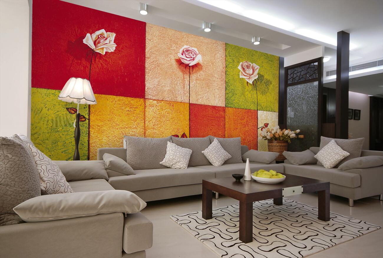 Tapeta Fototapeta Smukłe róże na geometrii kolorów (artykuł a99834 ) z kategorii Fototapety Abstrakcja