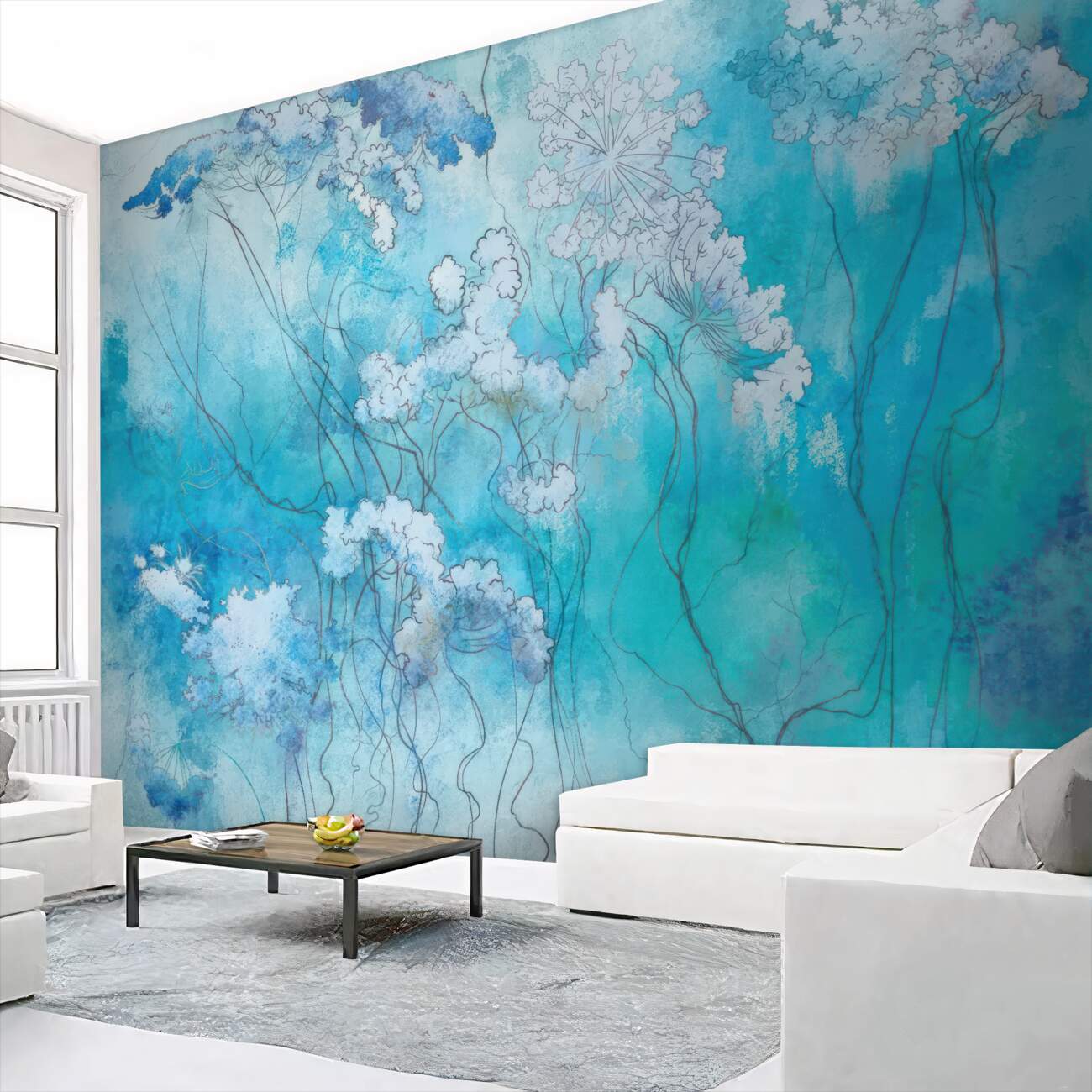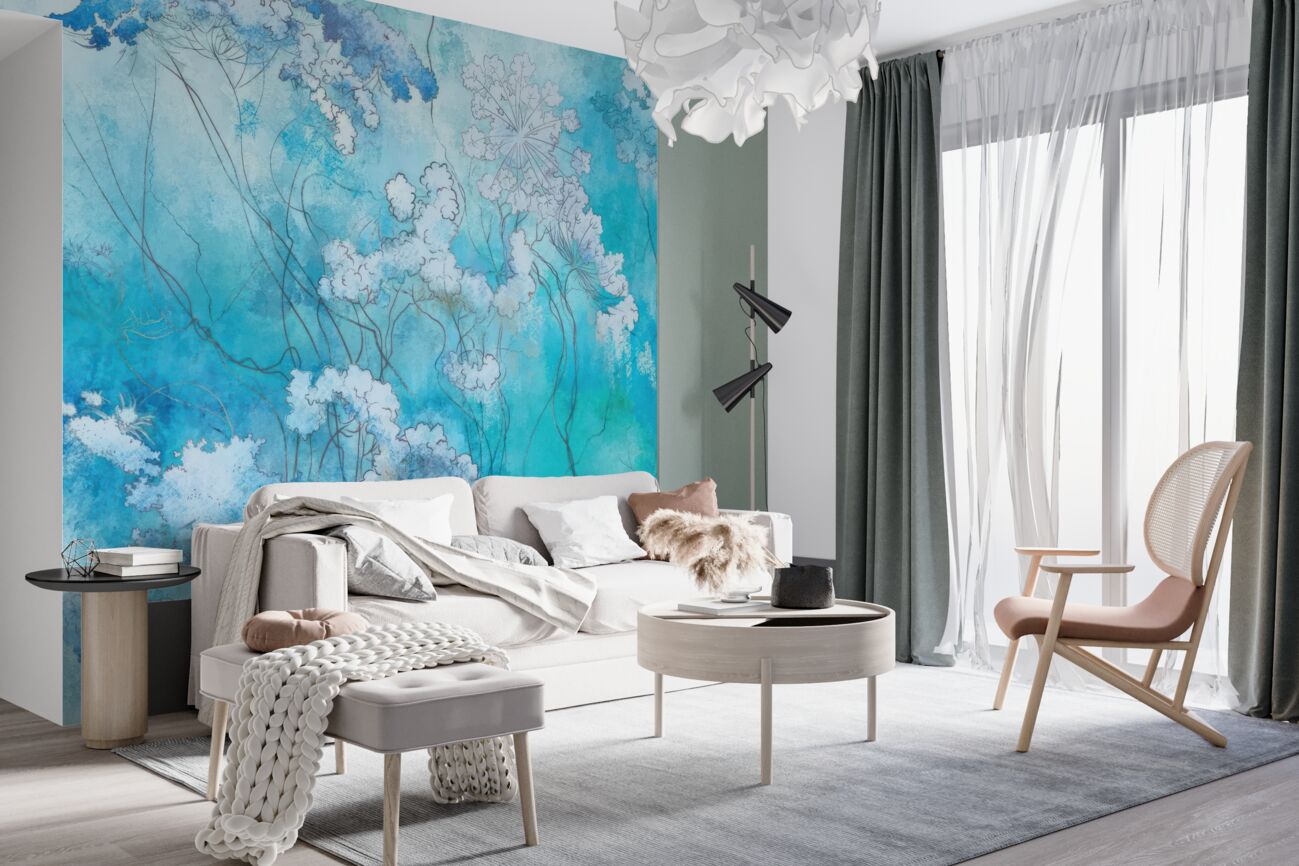 Tapeta Fototapeta Streszczenie kwiaty na niebieskim marmurze (artykuł a99411 ) z kategorii Fototapety Abstrakcja