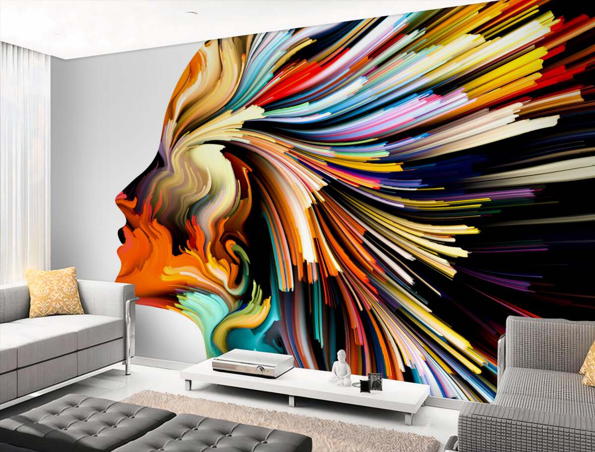 Tapeta Fototapeta Sylwetka dziewczynki w jasnych kolorach (artykuł a97325 ) z kategorii Fototapety Abstrakcja