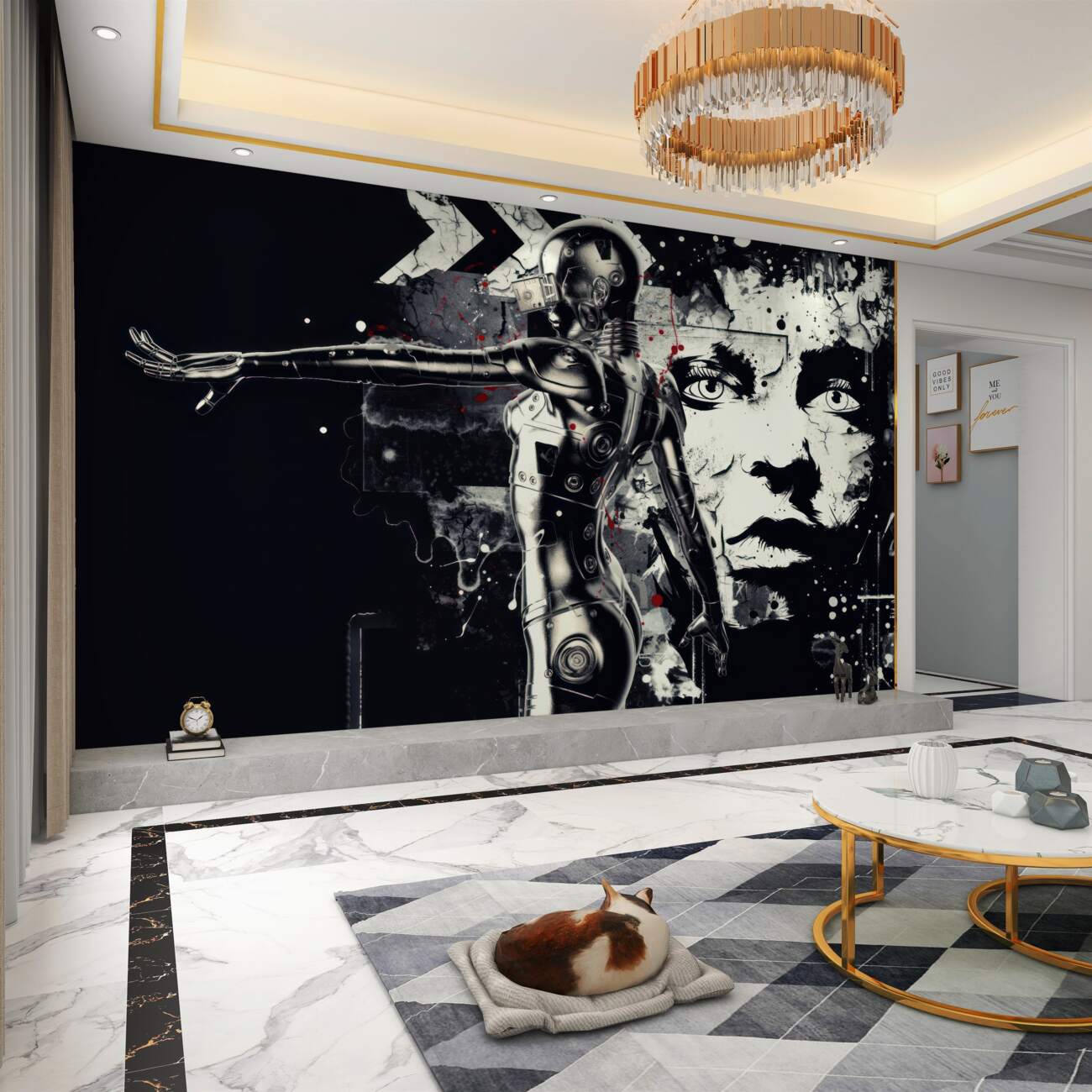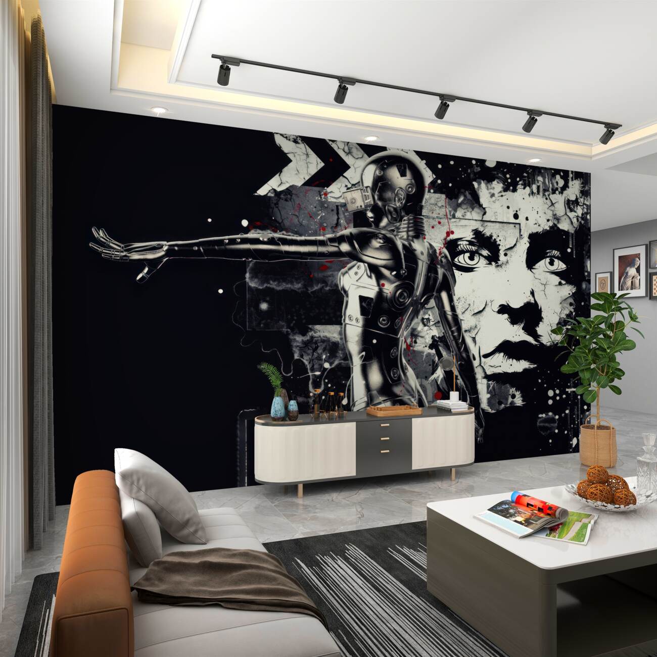 Tapeta Fototapeta Wizerunek dziewczyny -robota czarna -biała (artykuł a99368 ) z kategorii Fototapety Abstrakcja