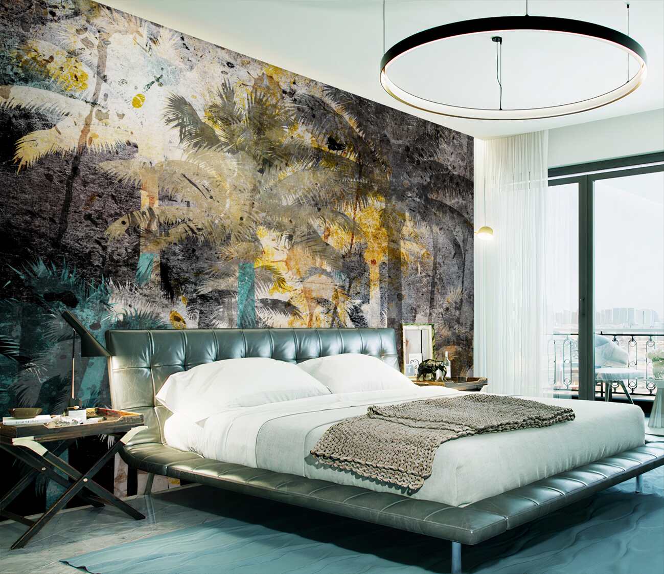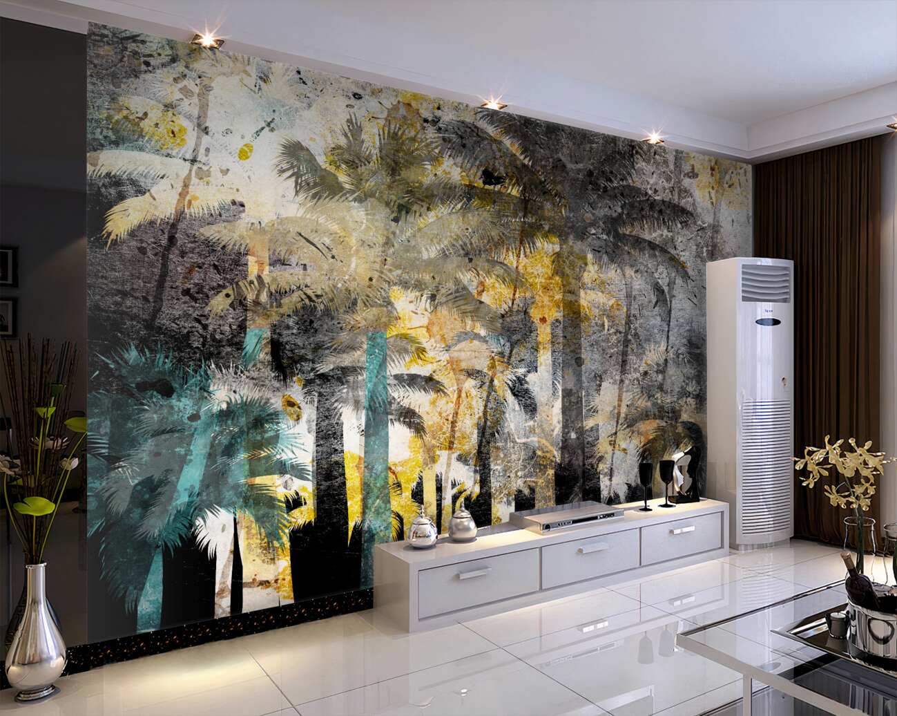 Tapeta Fototapeta Wysokie palmy to mroczna abstrakcja (artykuł a99806 ) z kategorii Fototapety Abstrakcja