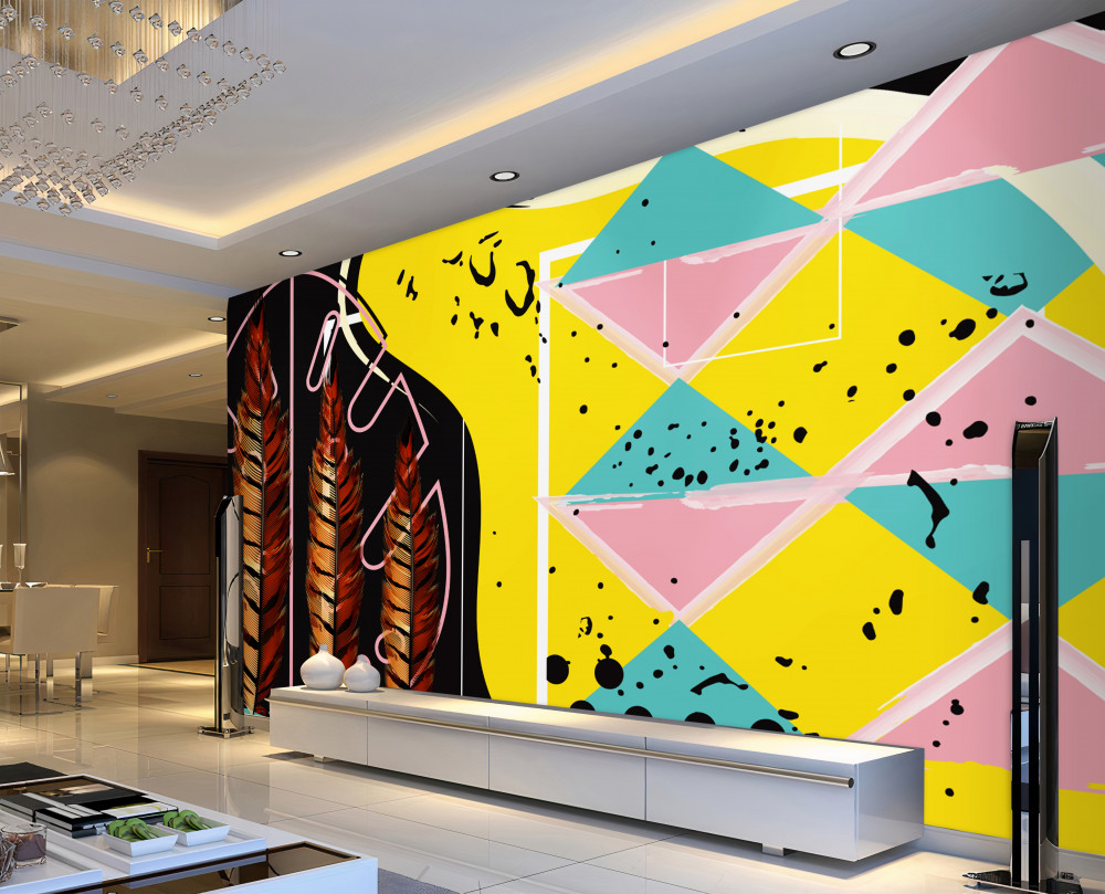 Fototapeta żółte kłoski na tle geometrycznych kształtów