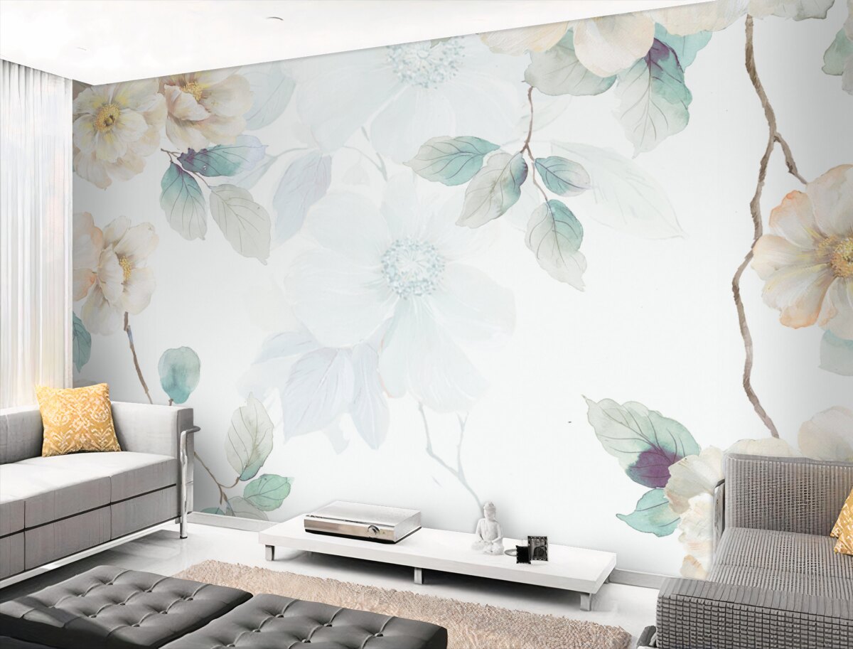 Tapeta Fototapeta Delikatne pąki kwiatowe na gałązkach (artykuł a98663 ) z kategorii Fototapety Akwarele
